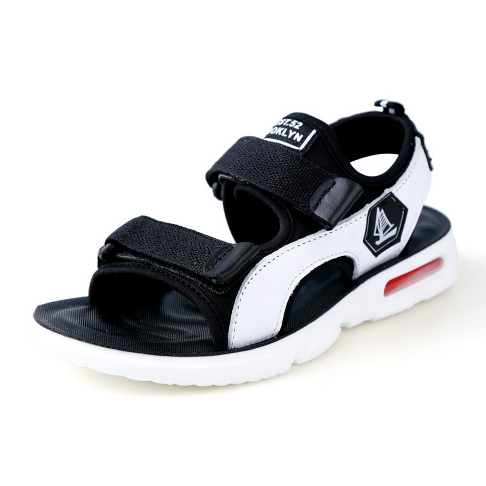 Boy's Open Sandals Non-slip Two-strap Beach Shoes Size 28 to 40(Black)