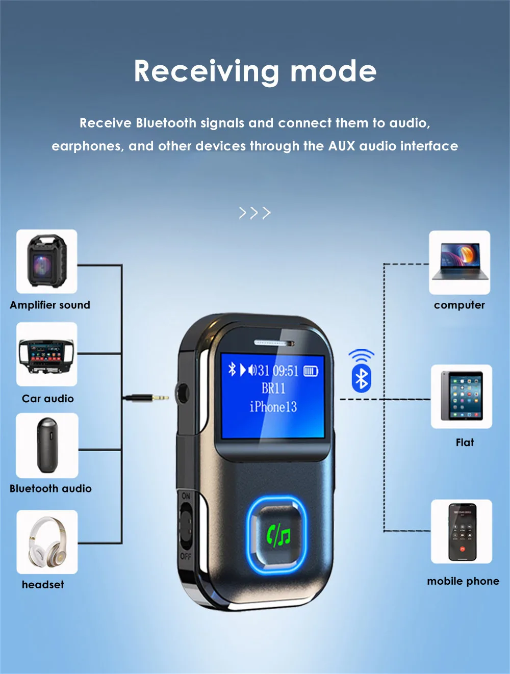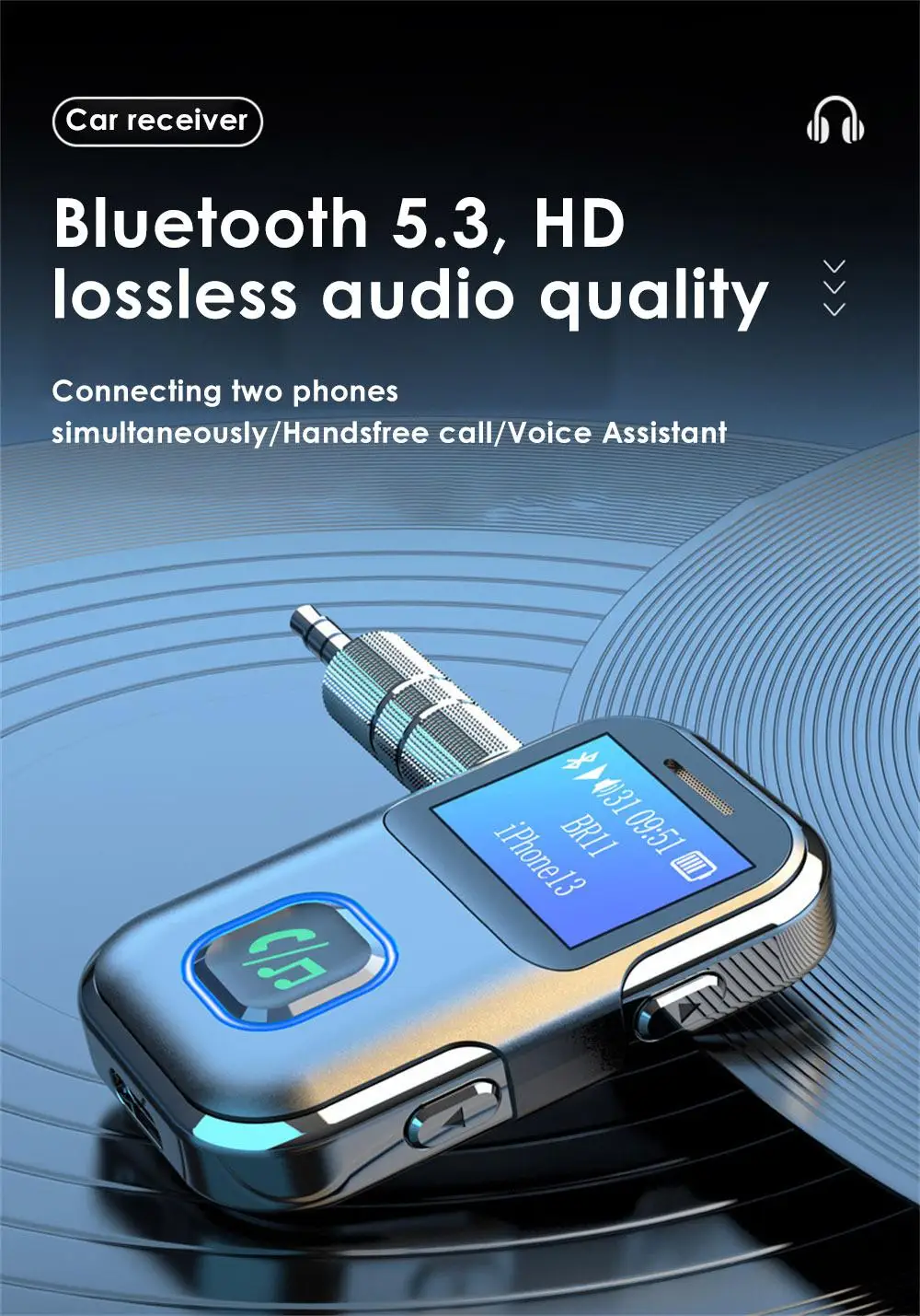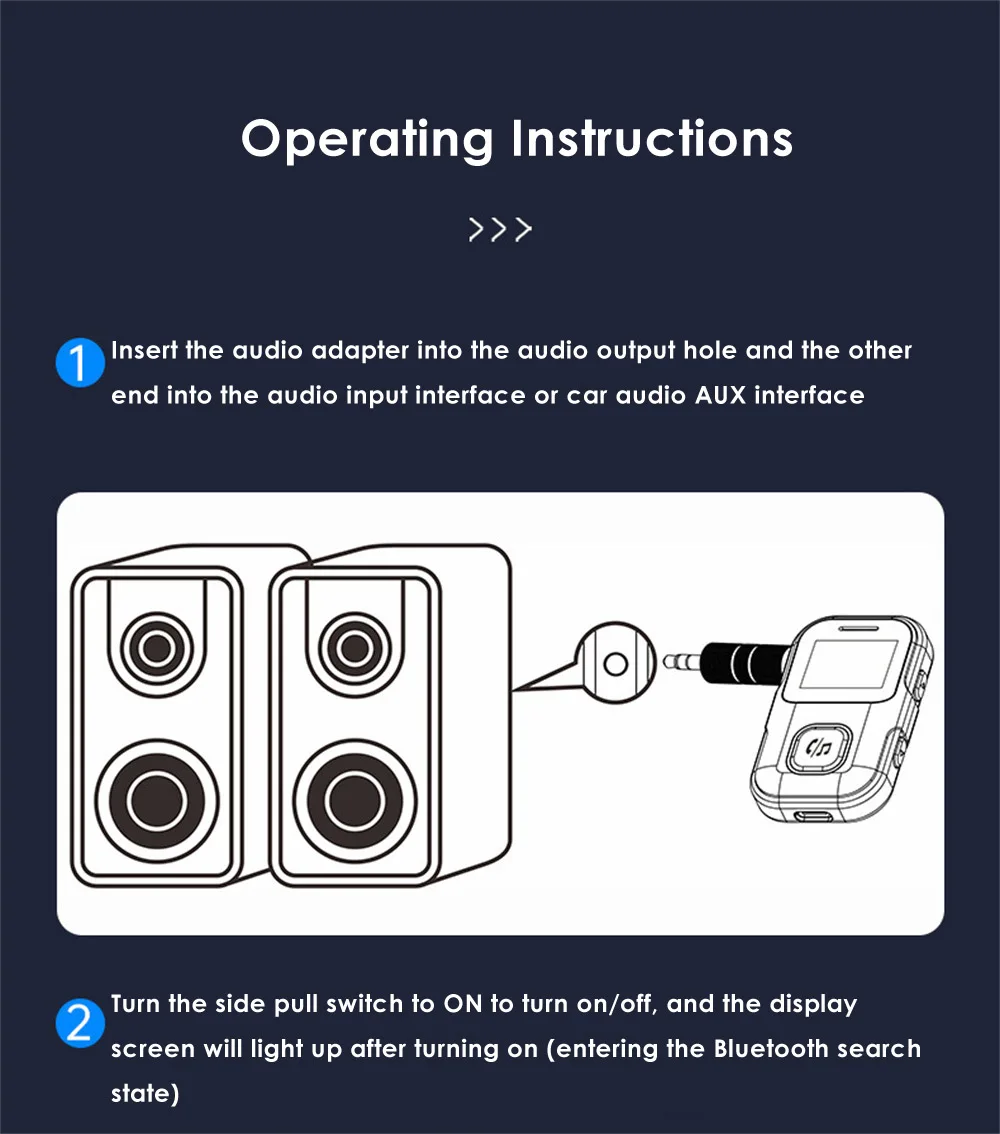 1. The 5.3 version of the new Bluetooth receiver can display the screen, Bluetooth playback distance is barrier-free 15 meters transmission, long-distance music enjoyment.
