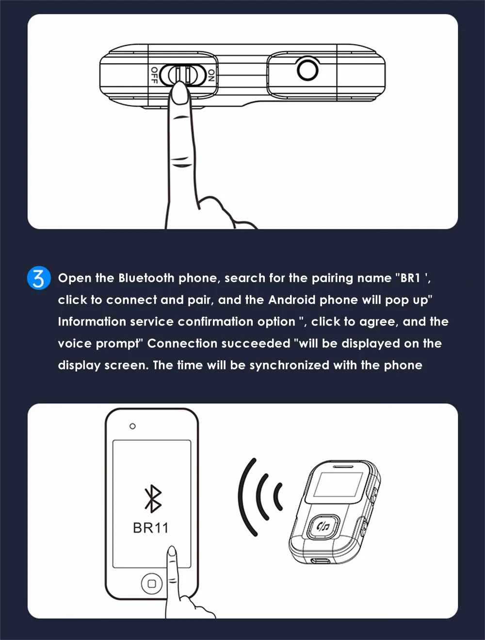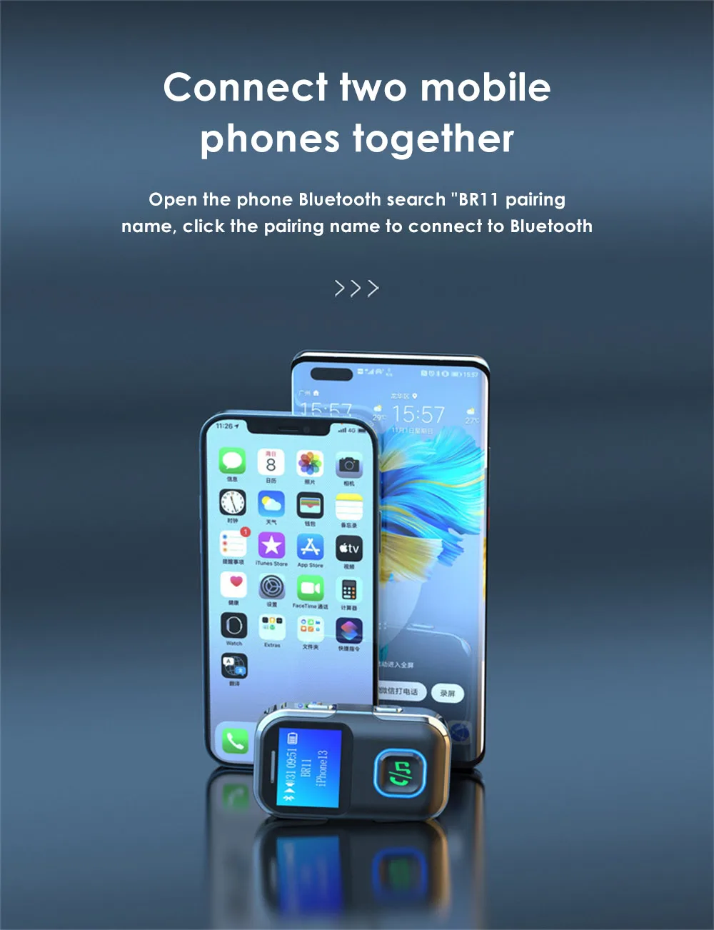 7. It can support two mobile phones to be connected together. Turn on the Bluetooth of the mobile phone to search for "BR11" pairing name, and click on the pairing name to connect to Bluetooth. It is convenient and quick to use.