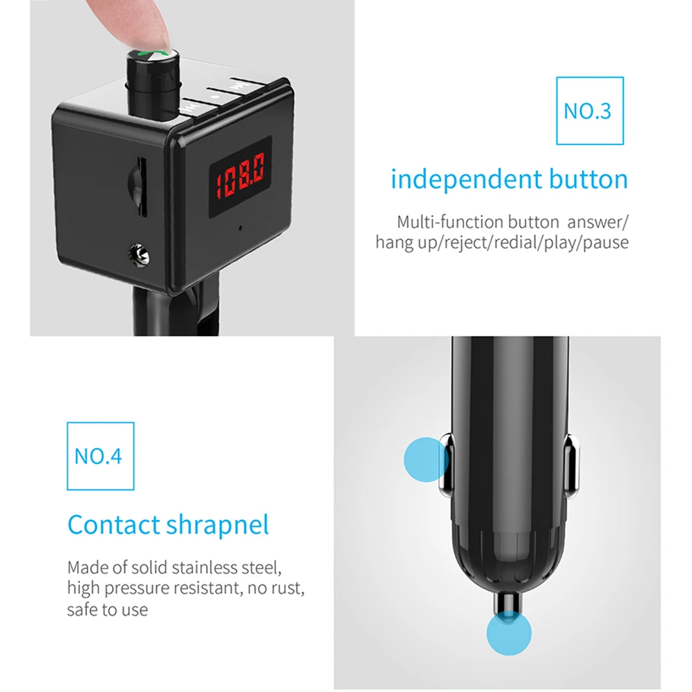 Transmitter Bluetooth transmitter of high quality-FM signal more stable, better anti-interference performance, improved sound experience and built-in microphone with echo cancellation and noise suppression (CVC) technology, offers your hands-free to talk and wonderful music.