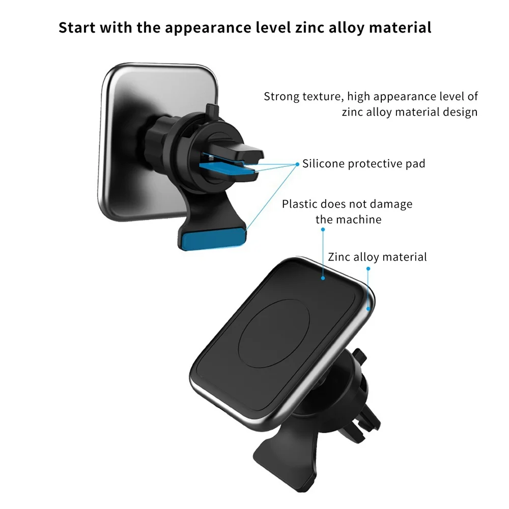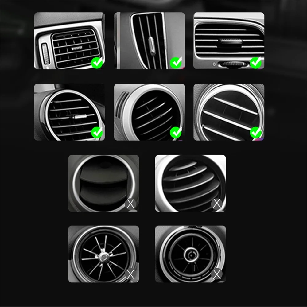 The air outlet clip silicone pad and front plastic surface design is harmless for car air vent bracket and the phone body, providing professional caring for daily usage.