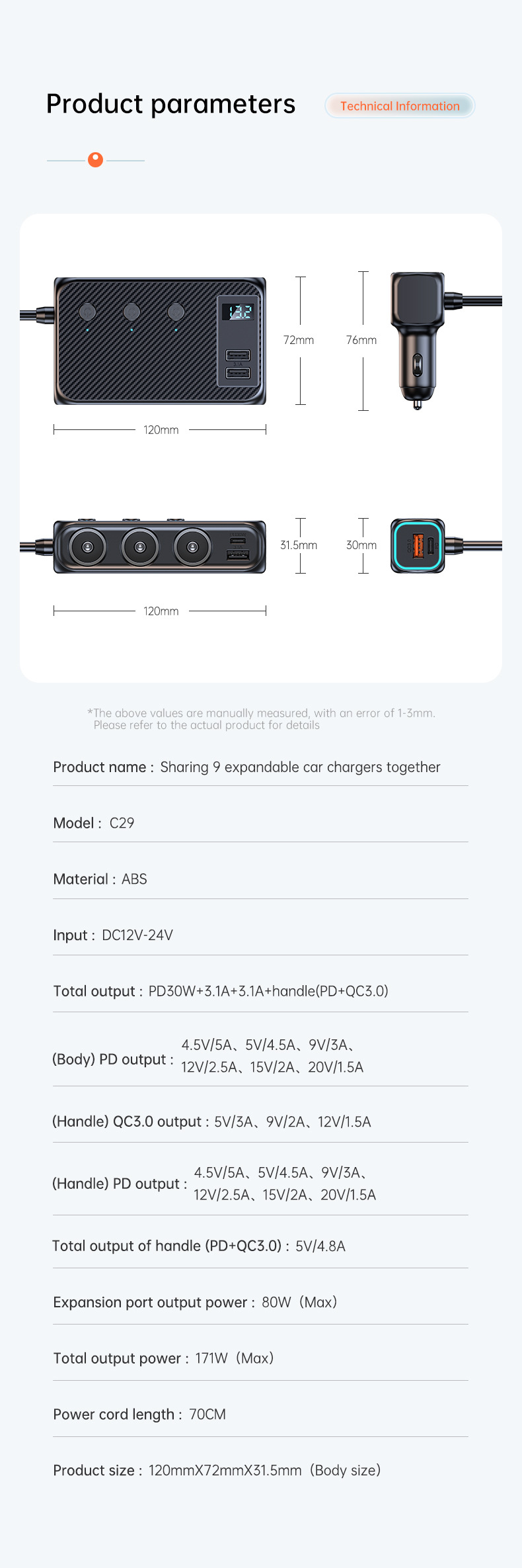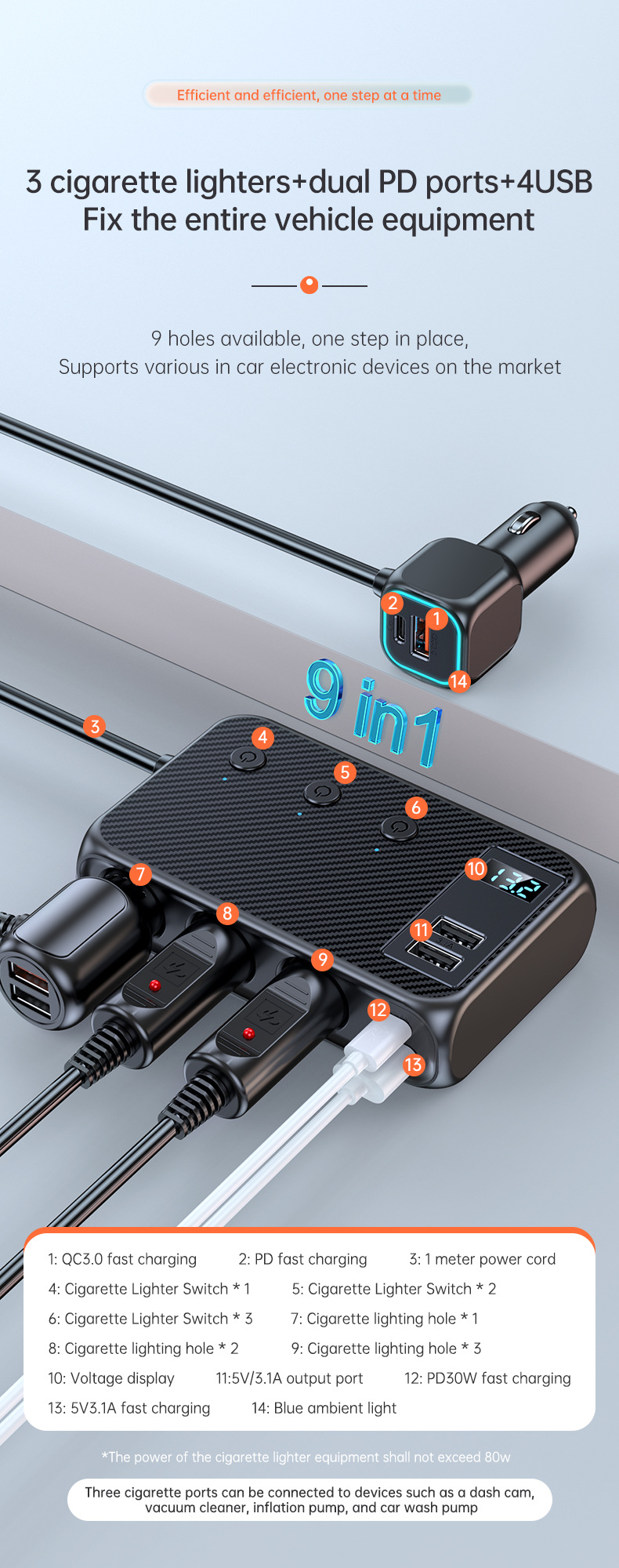 3 cigarette expansion ports+dual PD+4USB;