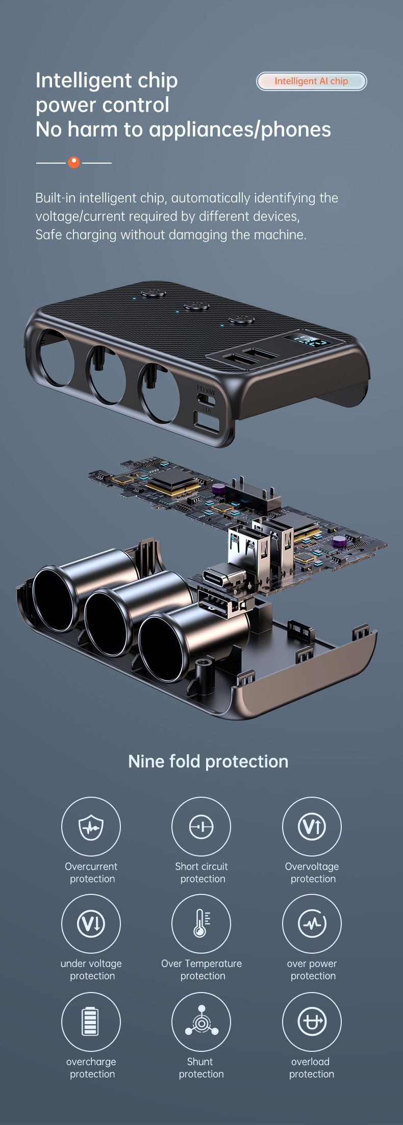 Intelligent control chip, nine fold protection