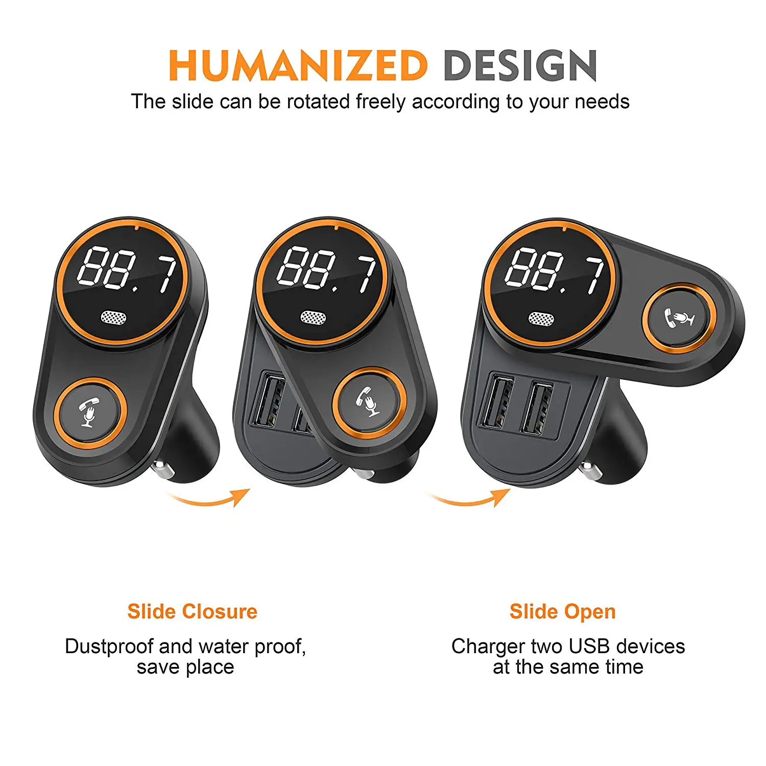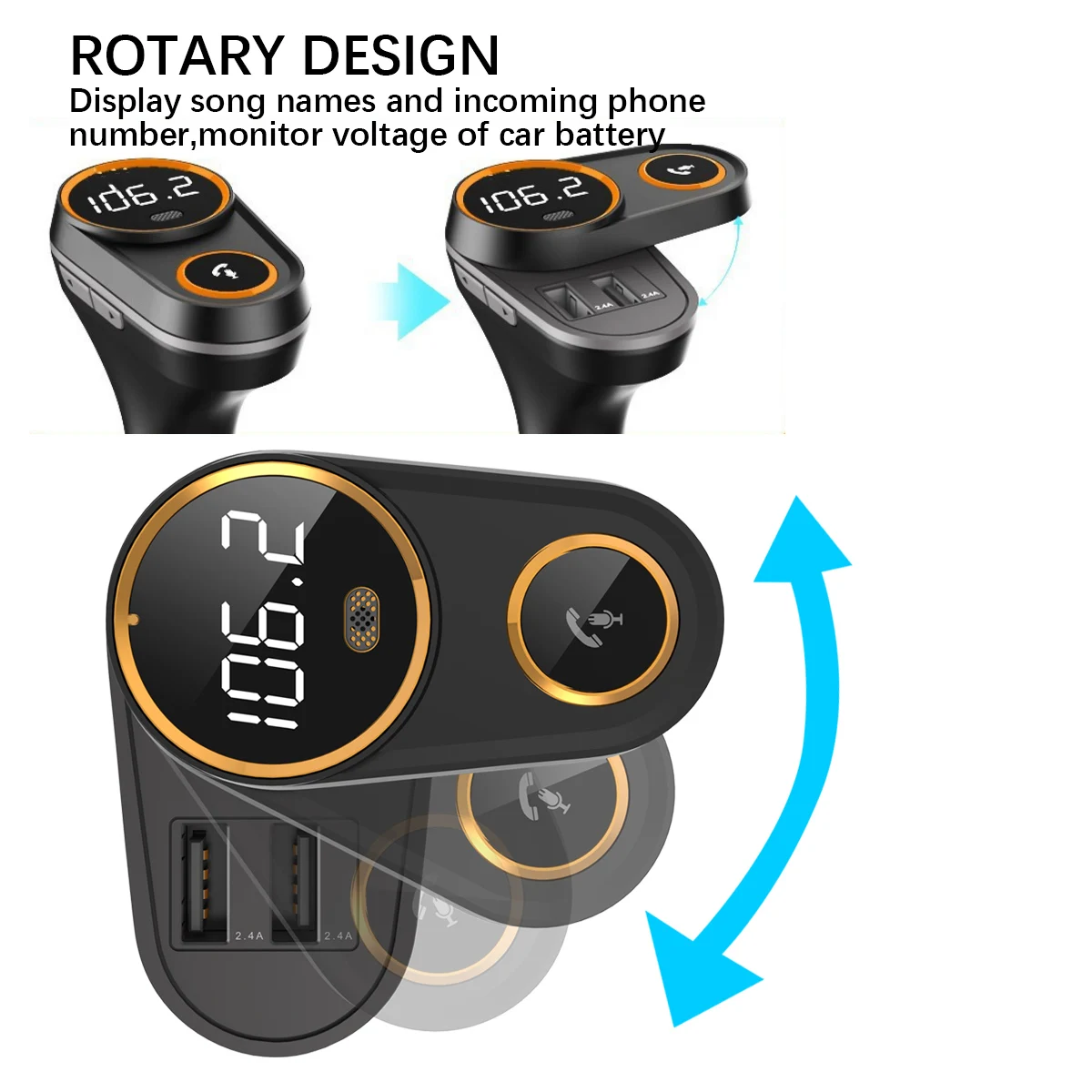 Driving hands-free calling,press round button to answer and hang off the phone, press twice to call back the last phone number you call; Fm frequency range: 87.5- 108 MHz, support TF card play music.