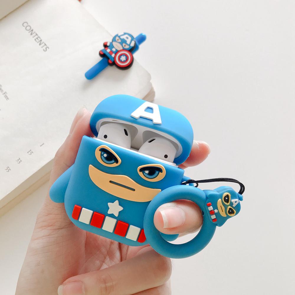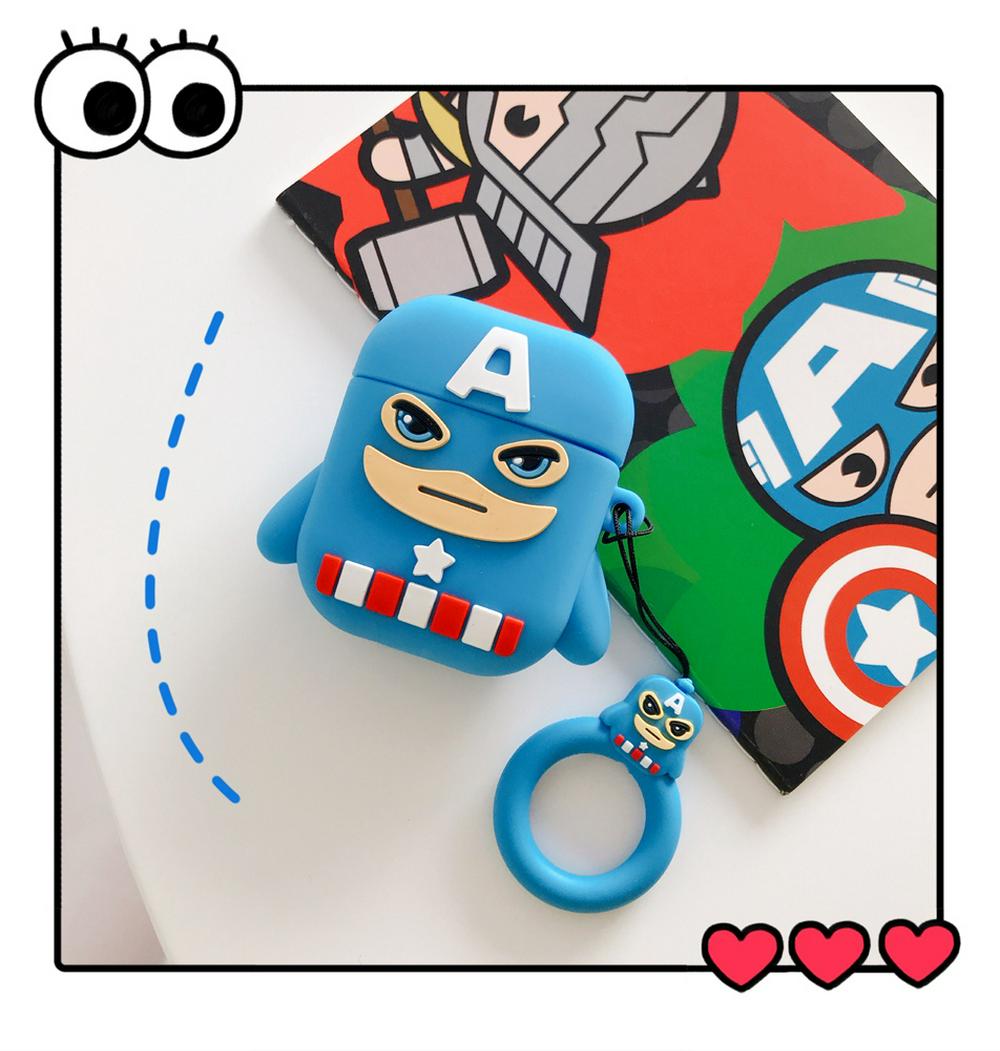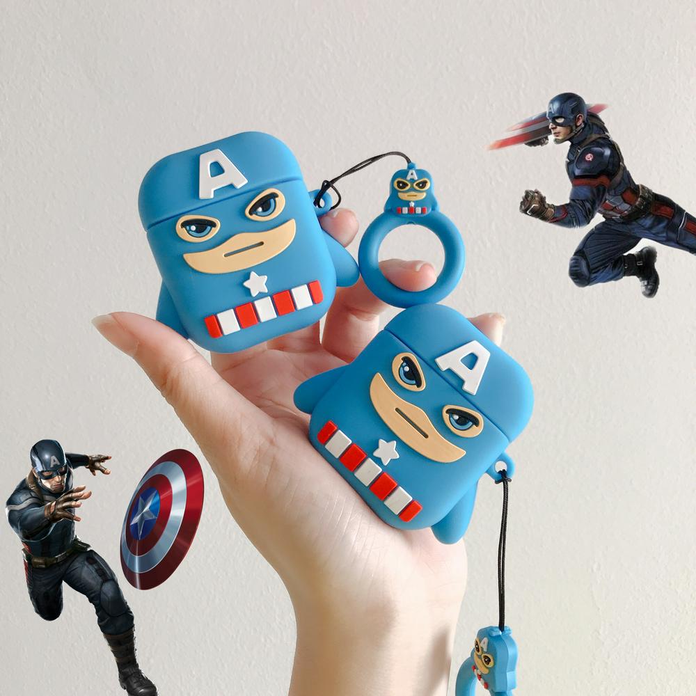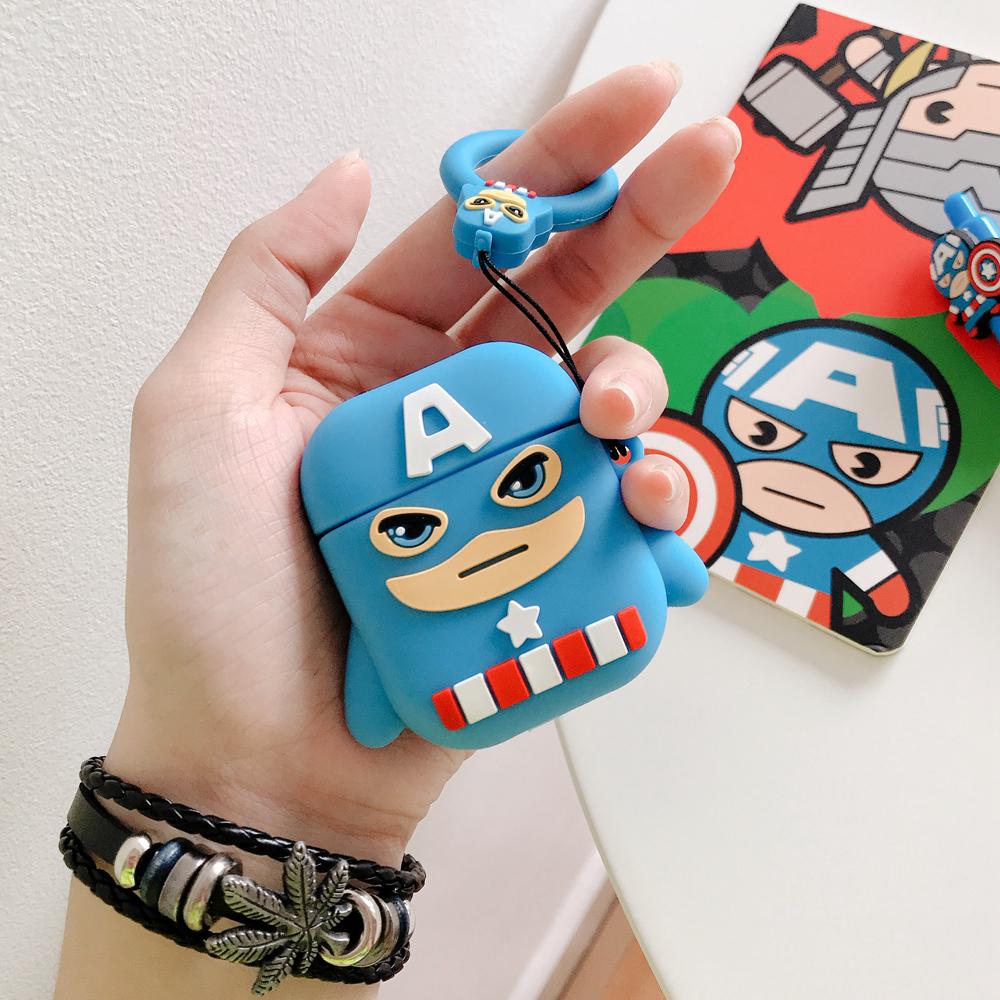 Captain America Airpods Case Keychain AirPod Earbud Charging Bluetooth Earphone Protective Hard Cover Case