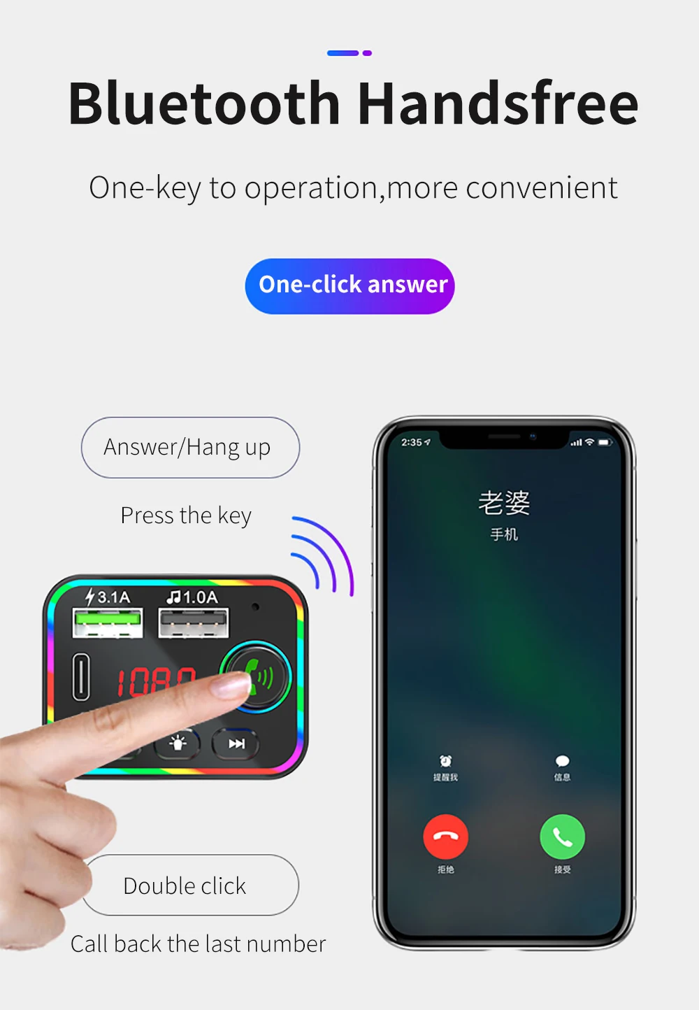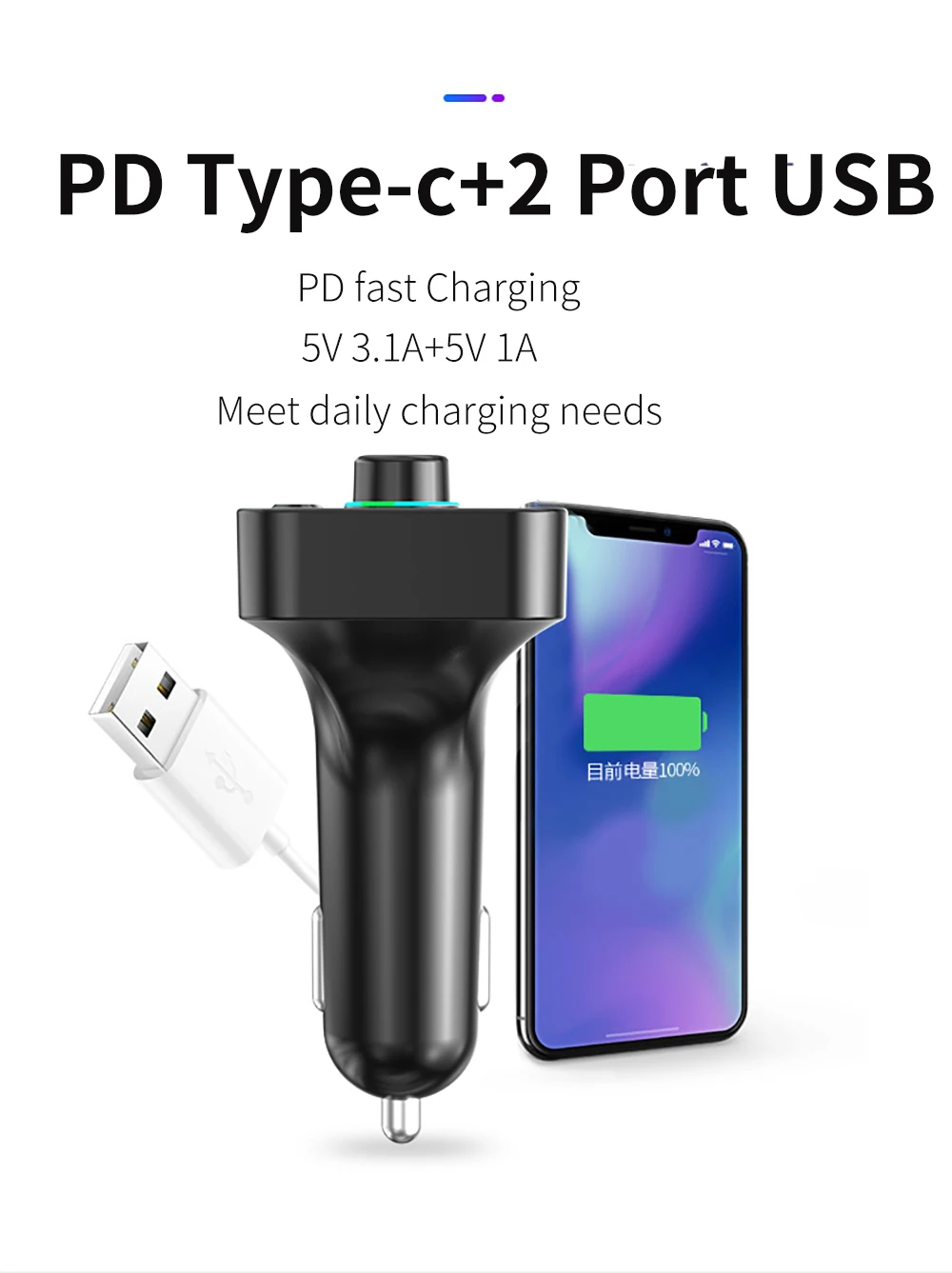 1: Bluetooth hands-free call USB/PD port with charging function 3.1A