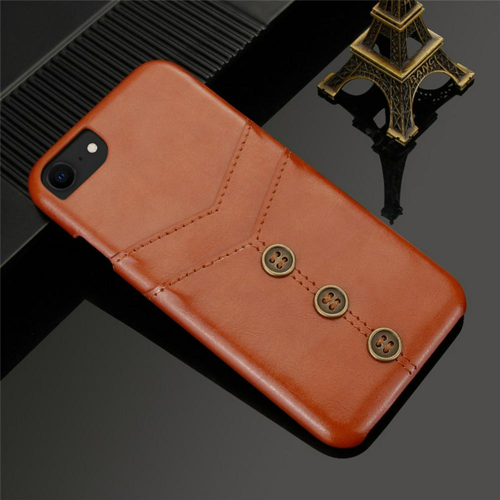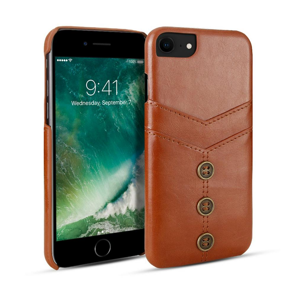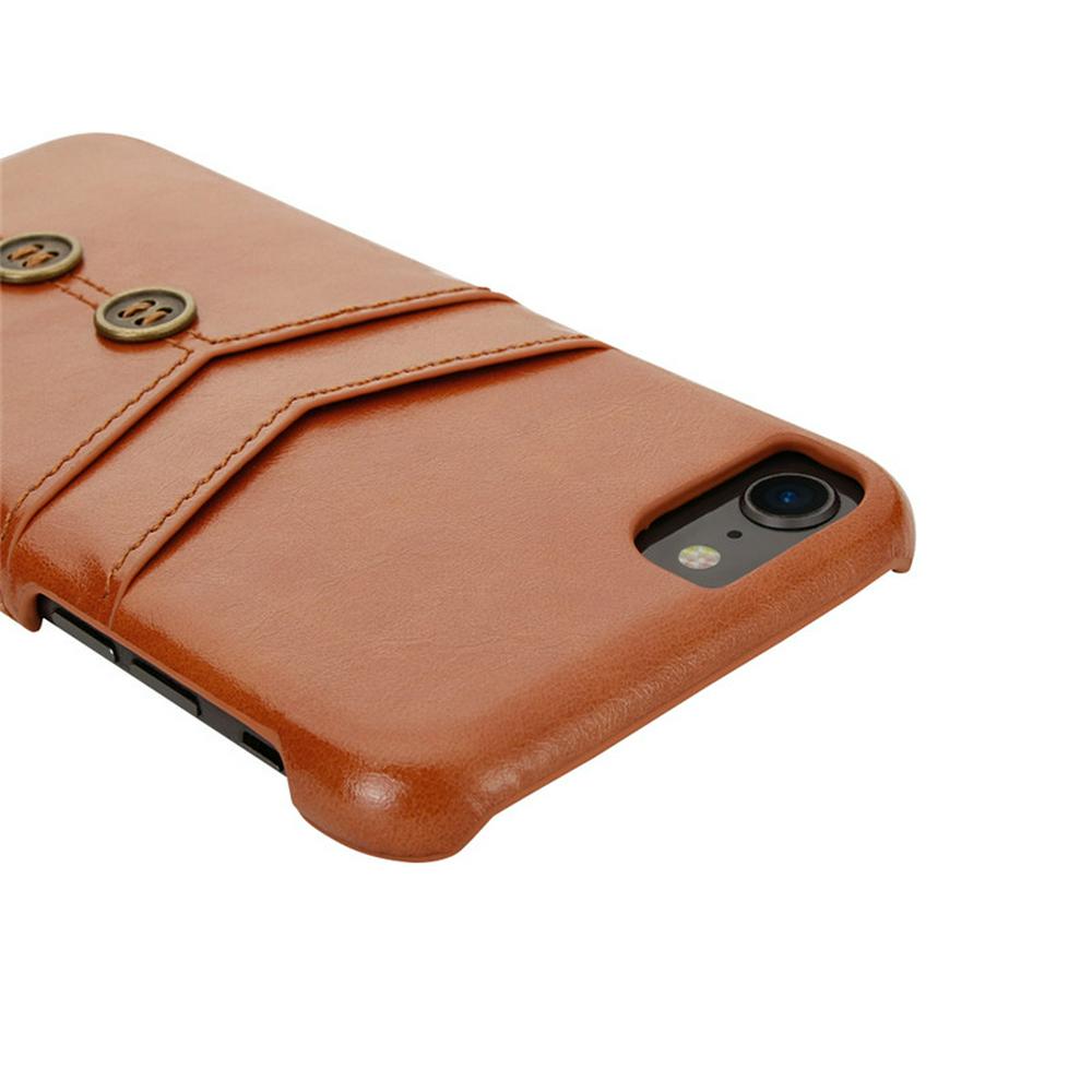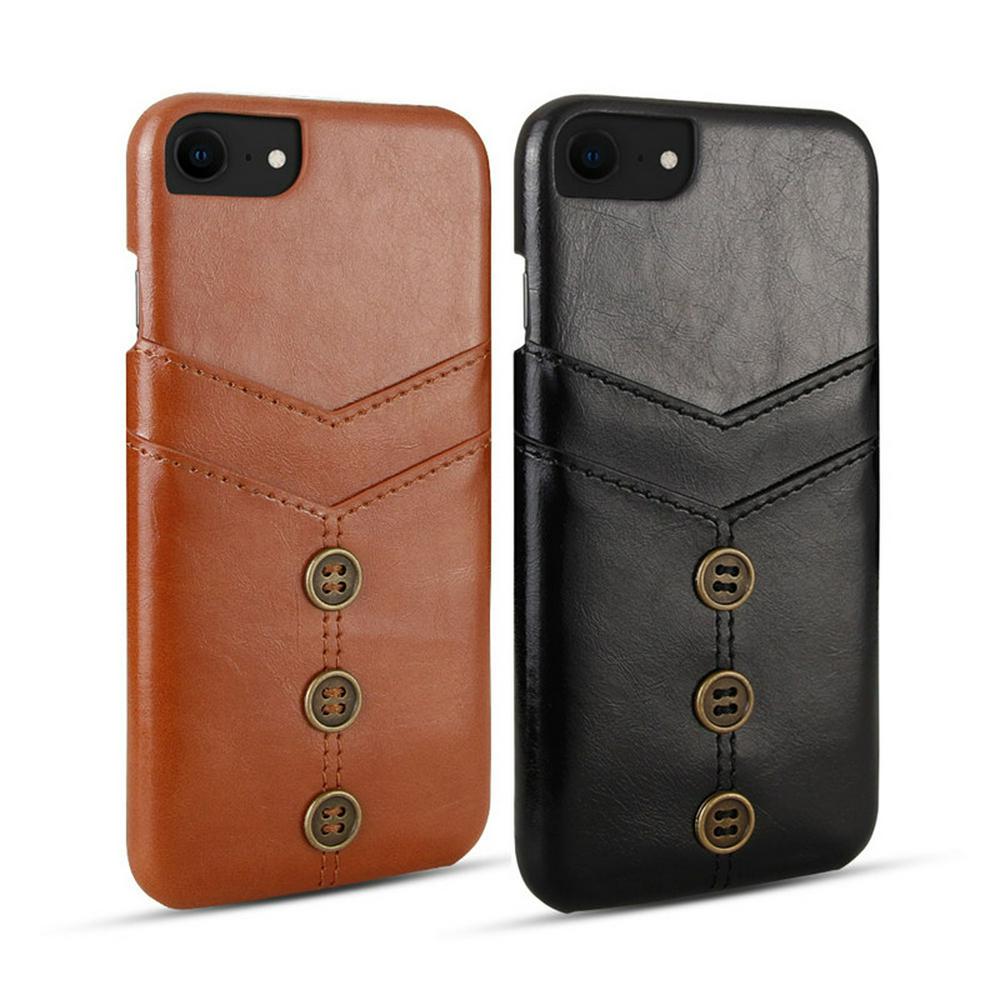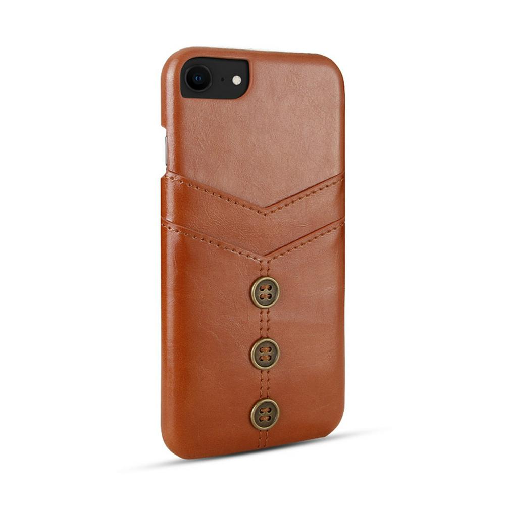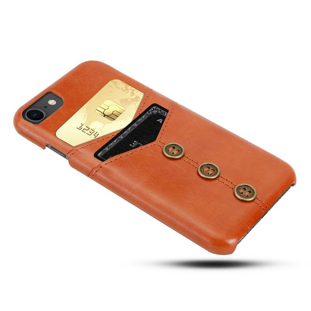 Case for iPhone 8/iPhone 7, Leather Card Holder Phone Cover with Bronze Buttons on the Back