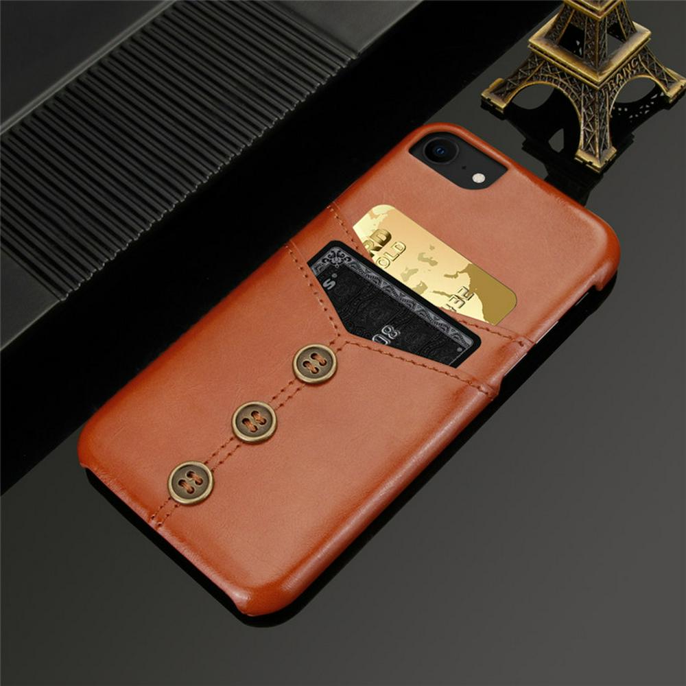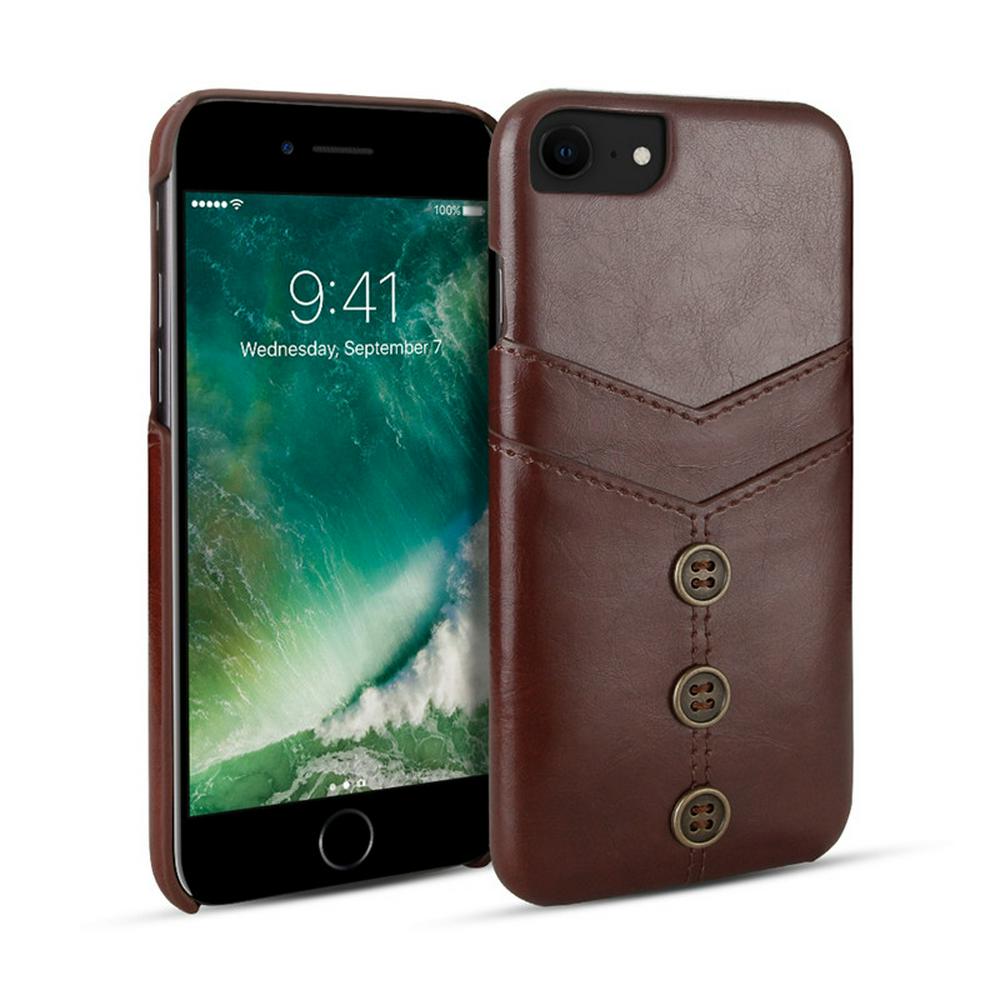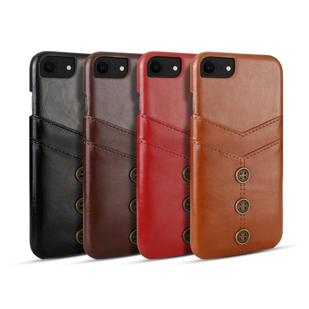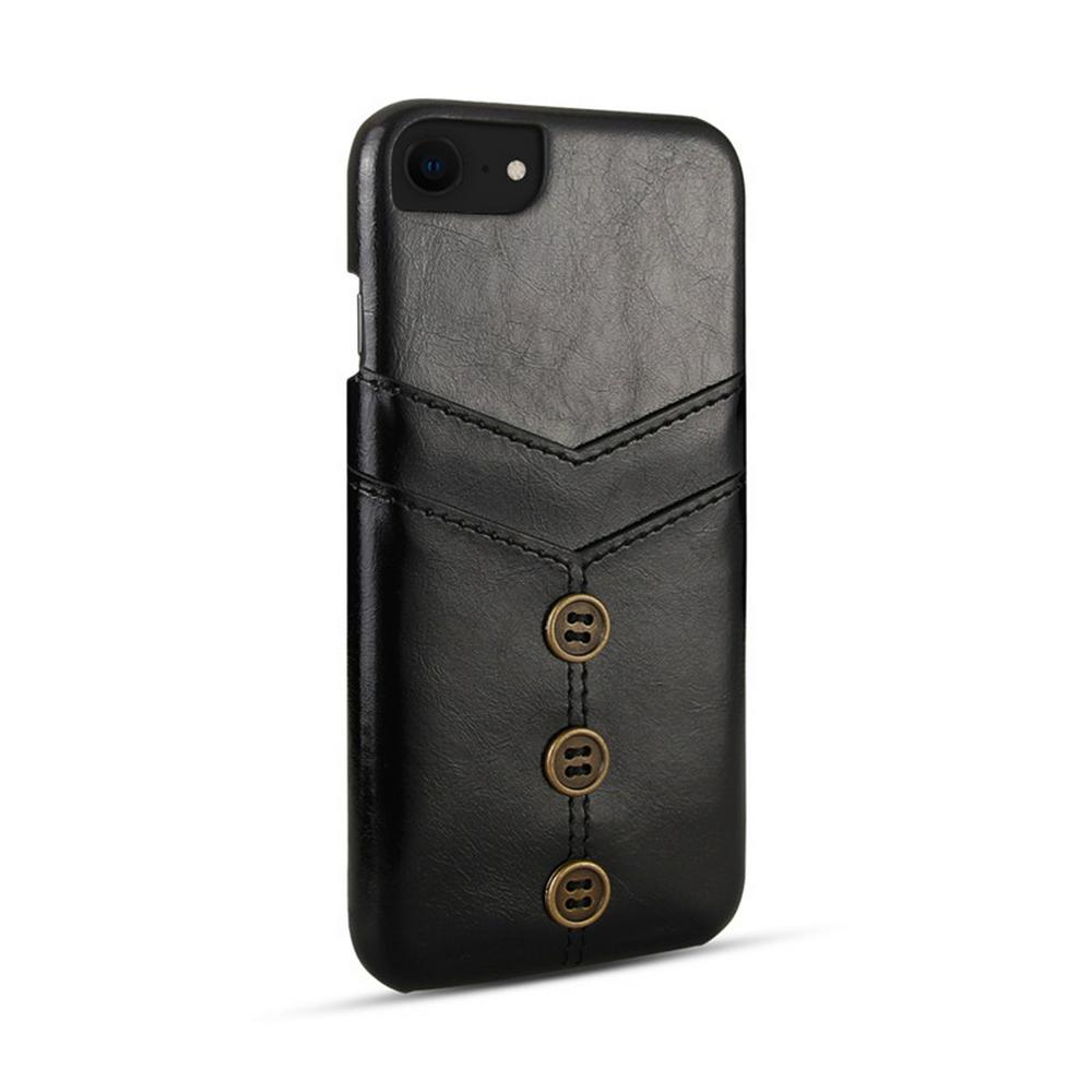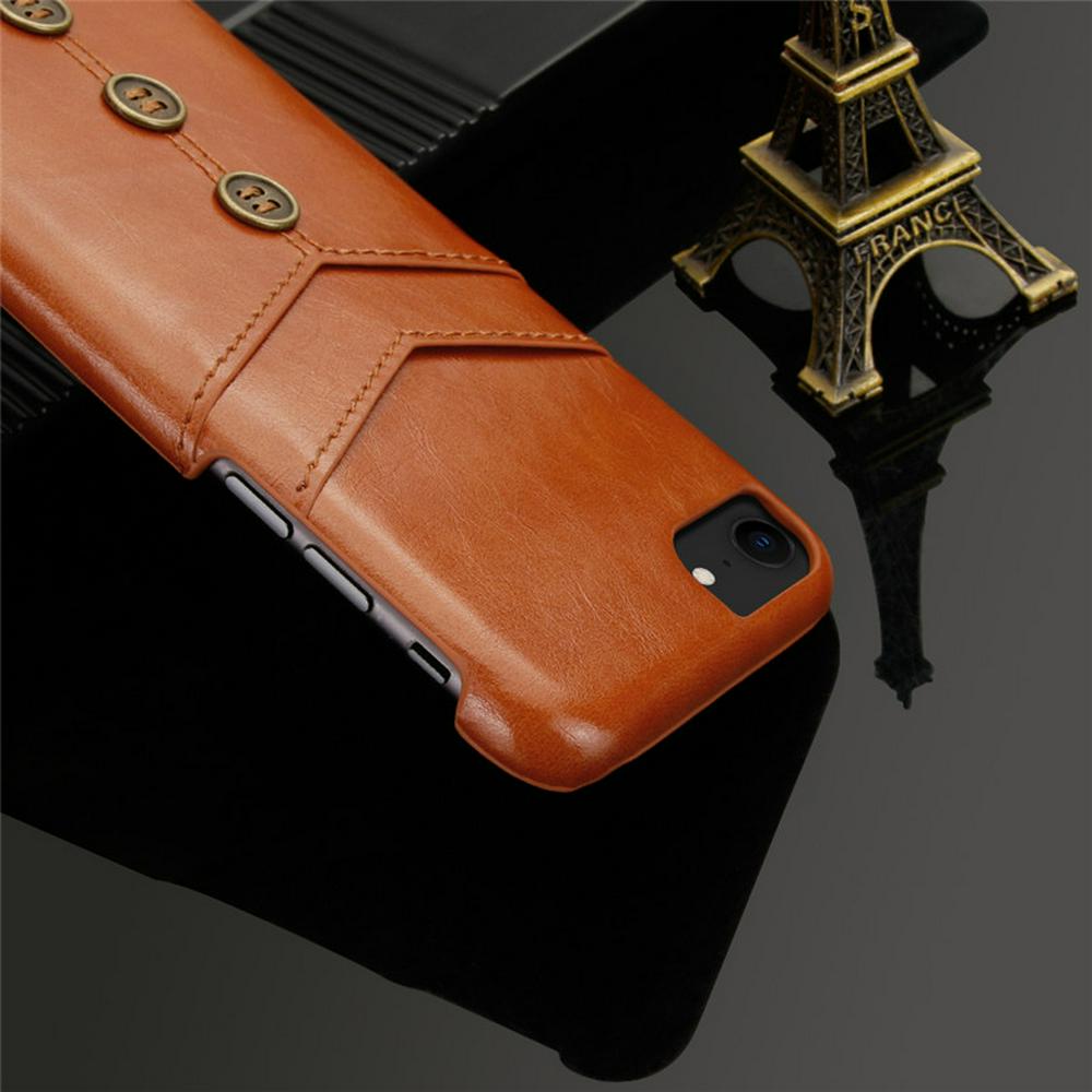 Case for iPhone 8/iPhone 7, Leather Card Holder Phone Cover with Bronze Buttons on the Back