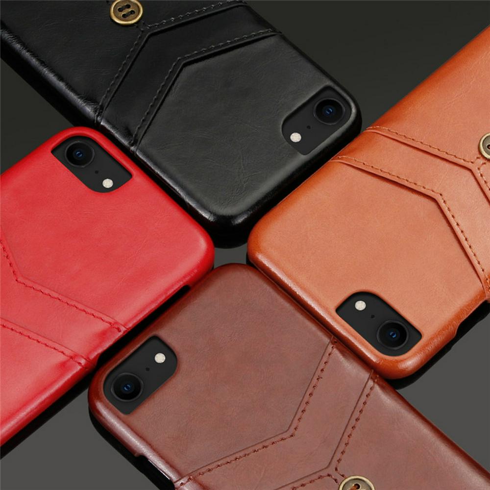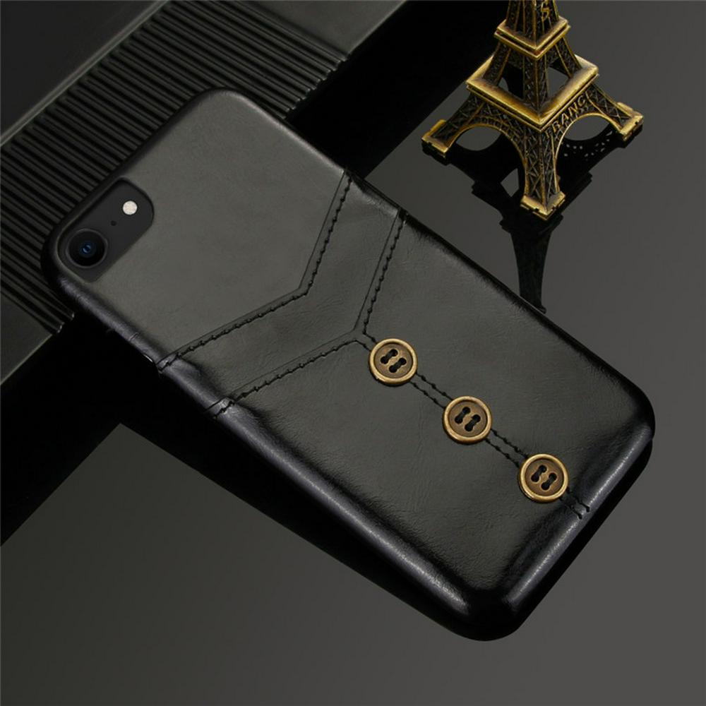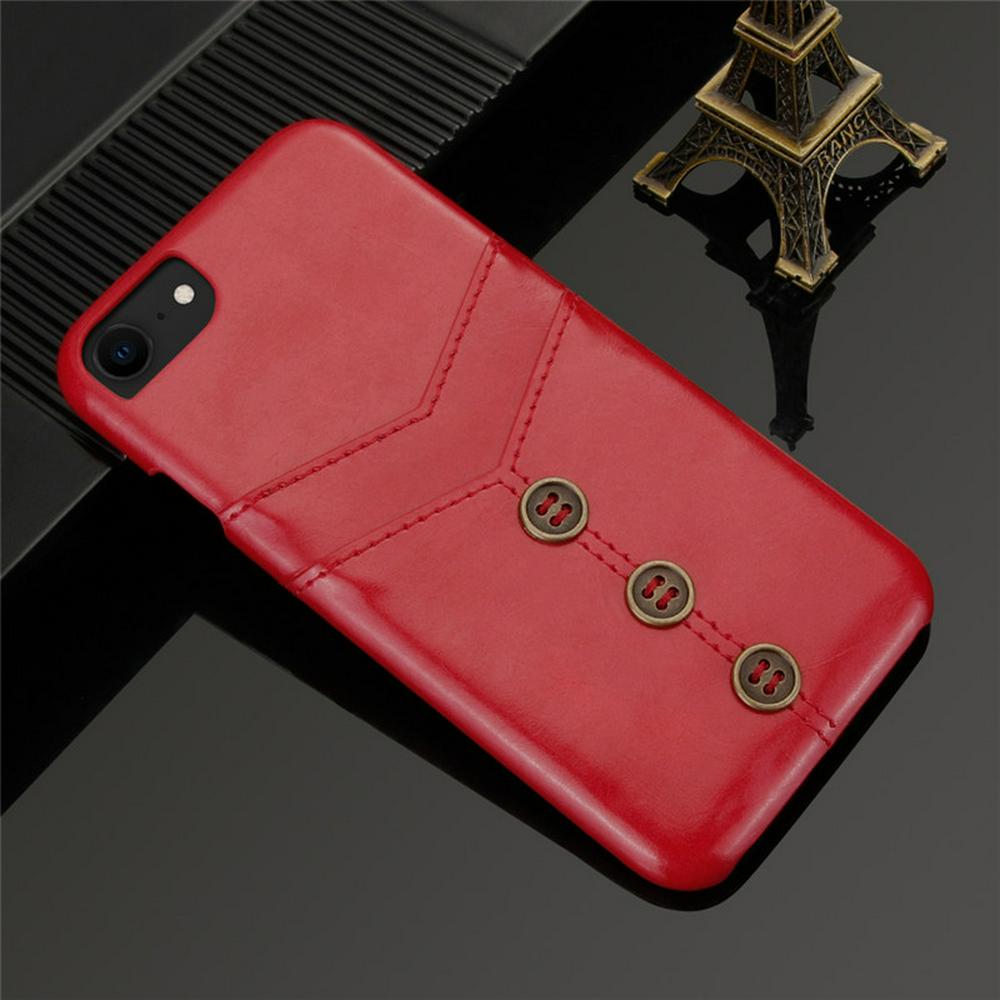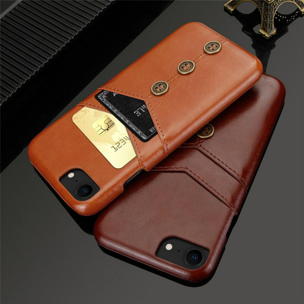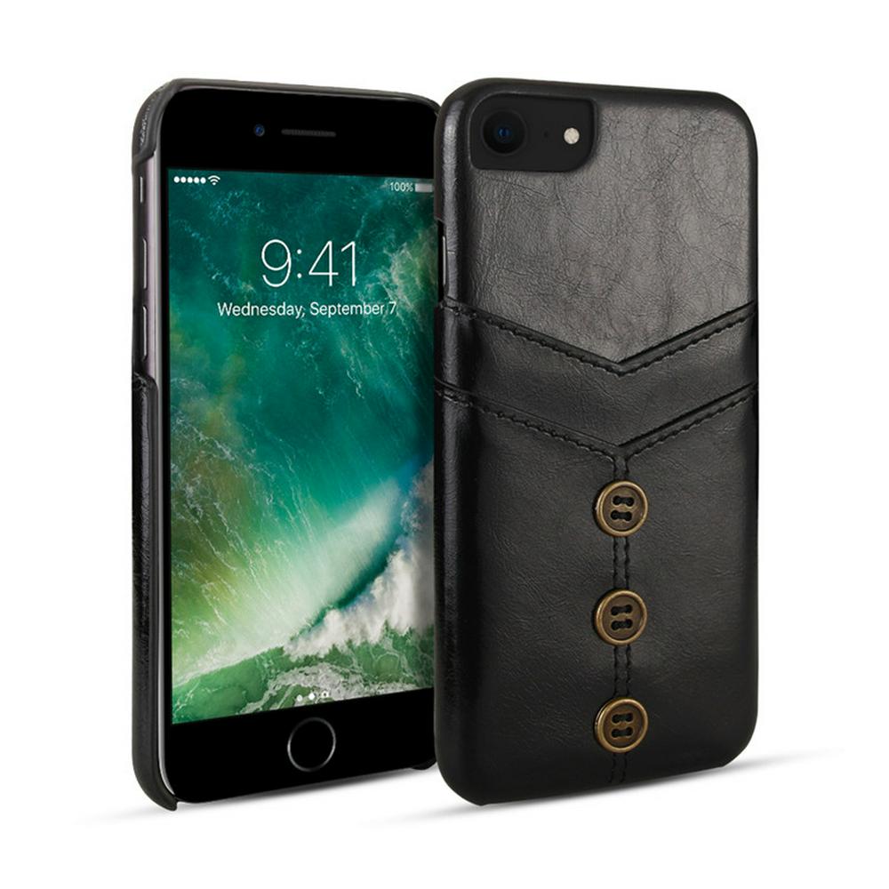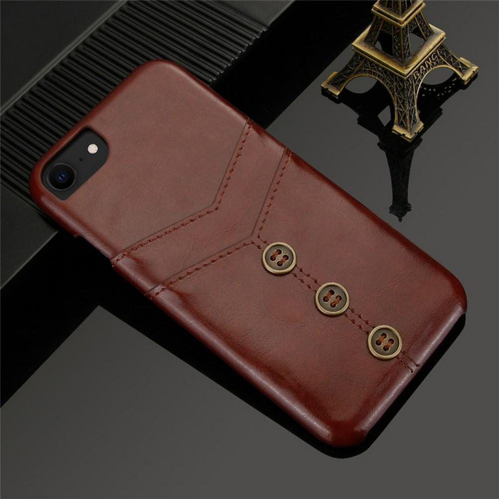 Case for iPhone 8/iPhone 7, Leather Card Holder Phone Cover with Bronze Buttons on the Back