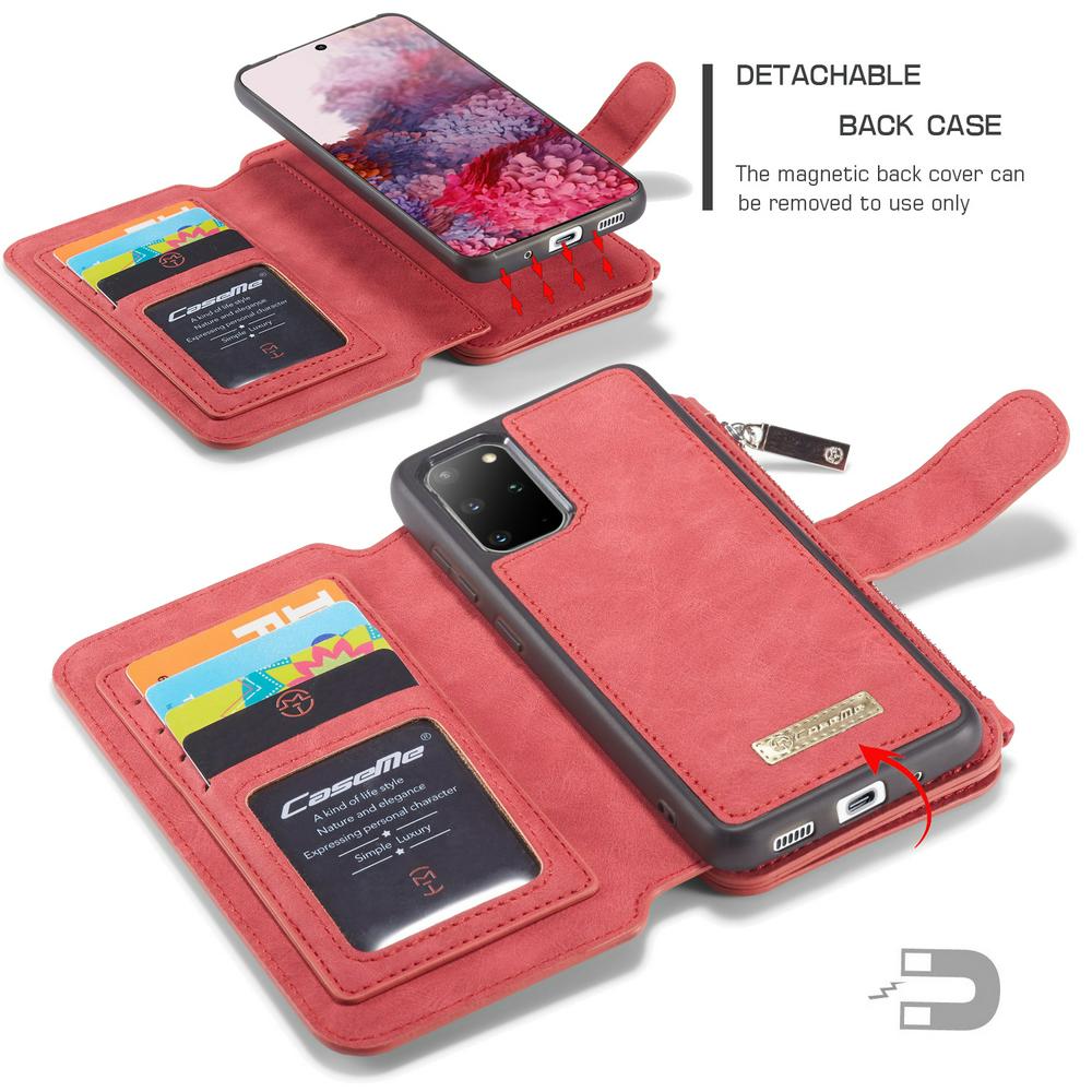 CaseMe 007 Series Multi-Function PU Leather + Detachable Magnetic Wireless Charging Support Leather Coated TPU Back Case 14 Card Slots with Magnetic Buckle and 1 Zipper Wallet Case for Samsung Galaxy S20+