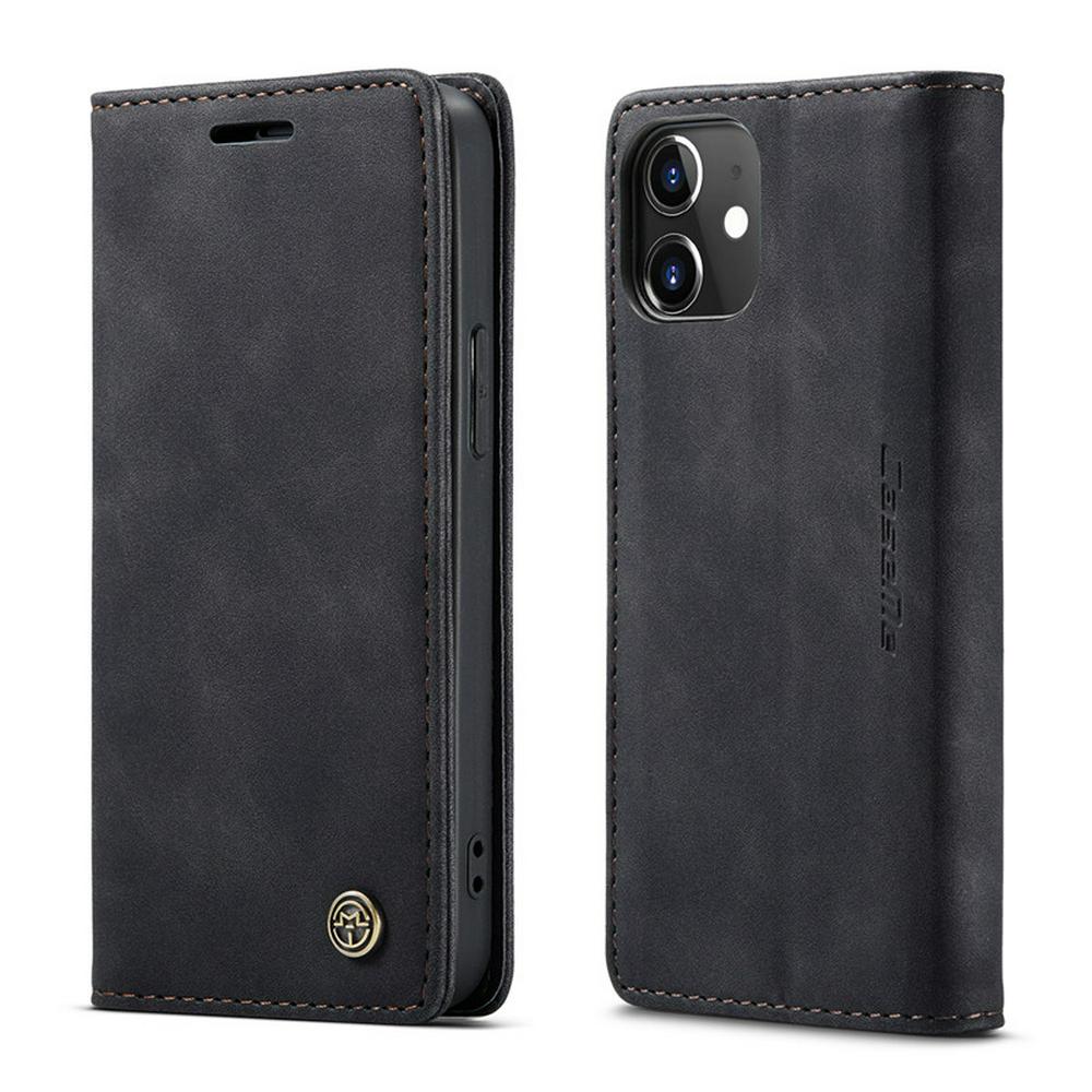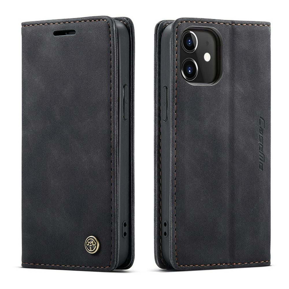 CaseMe All Round Shockproof Side Flip Magnetic Closure PU Leather + Soft TPU with Card Slots and Stand Case for iPhone 12 5.4