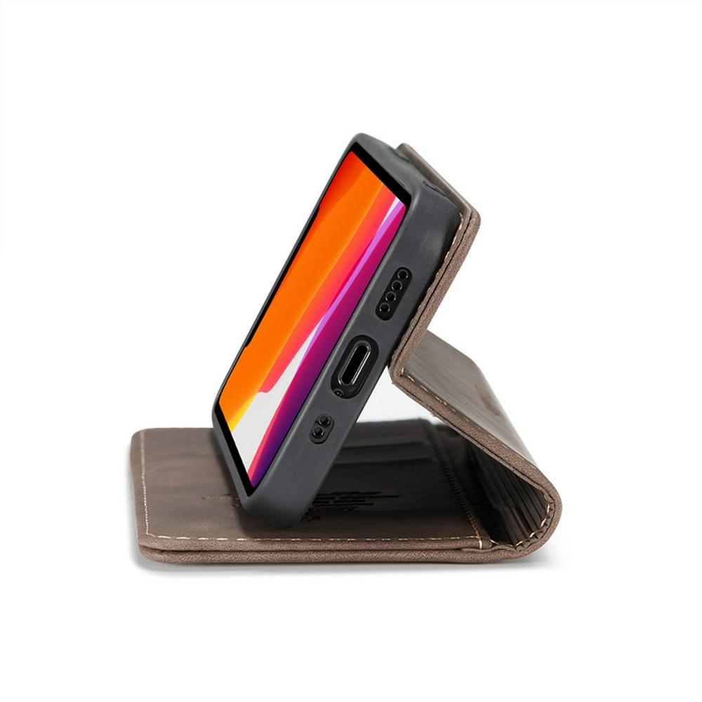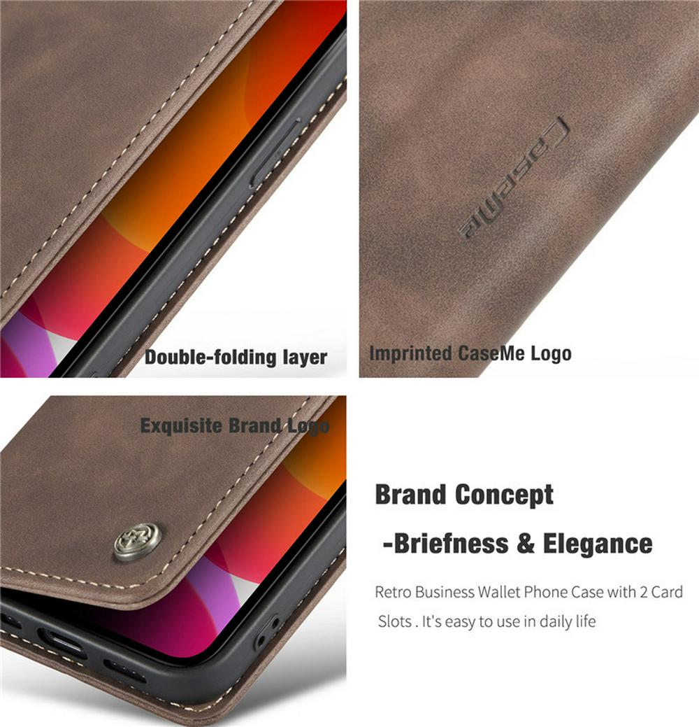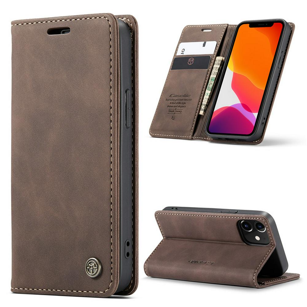 CaseMe All Round Shockproof Side Flip Magnetic Closure PU Leather + Soft TPU with Card Slots and Stand Case for iPhone 12 5.4
