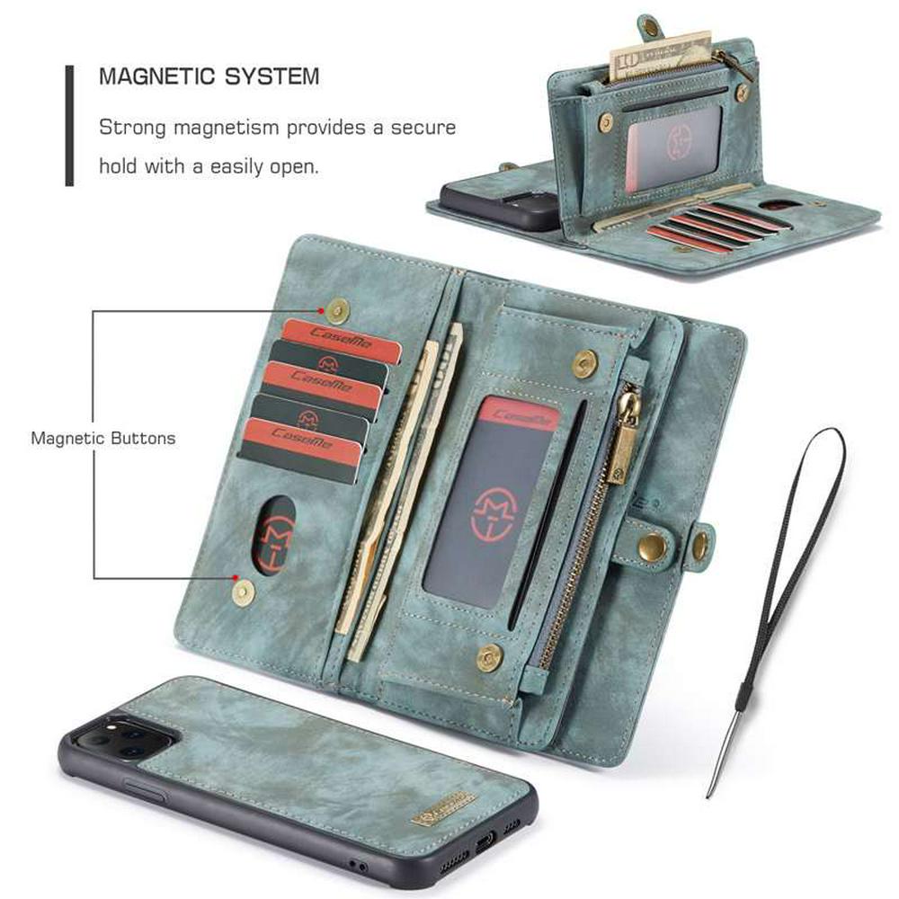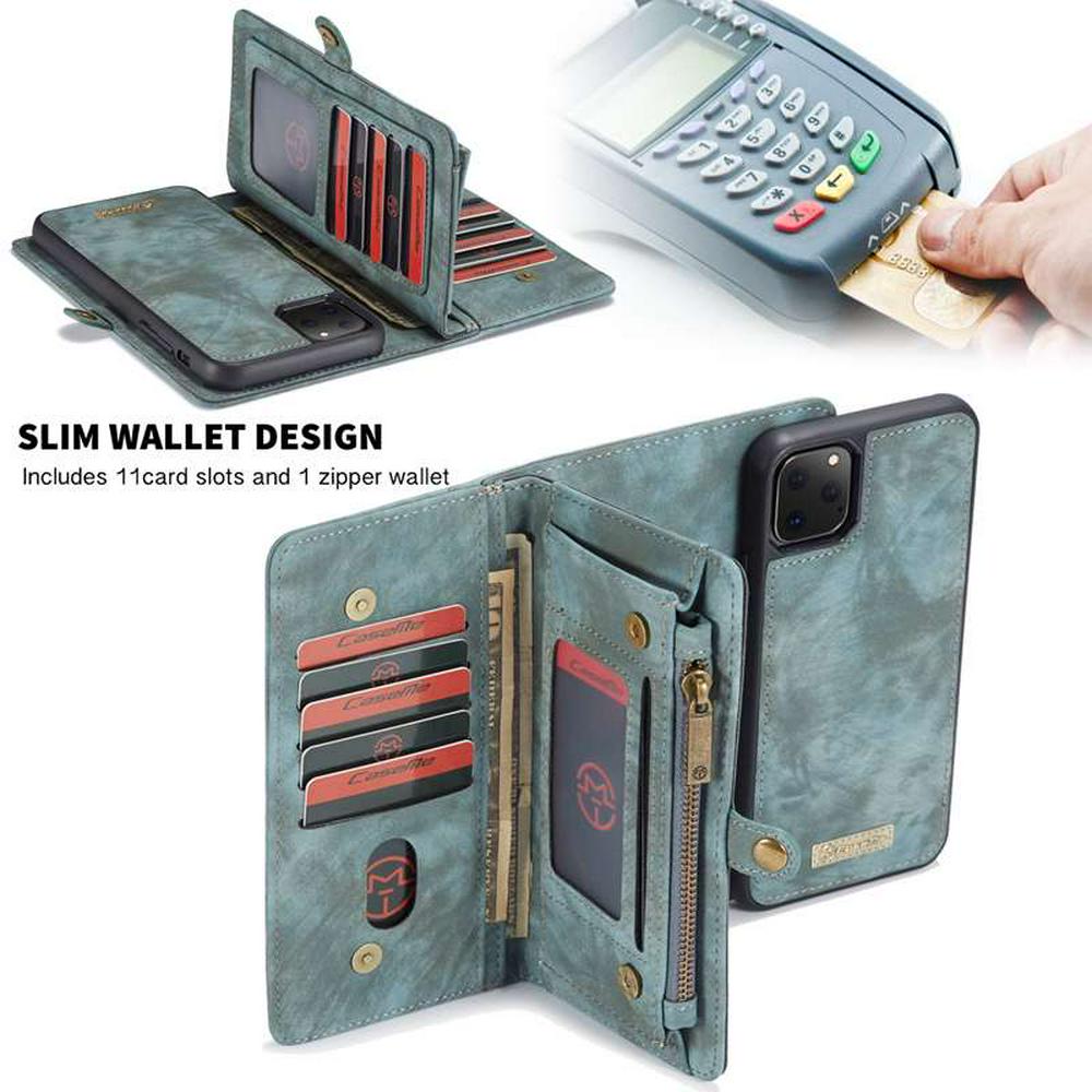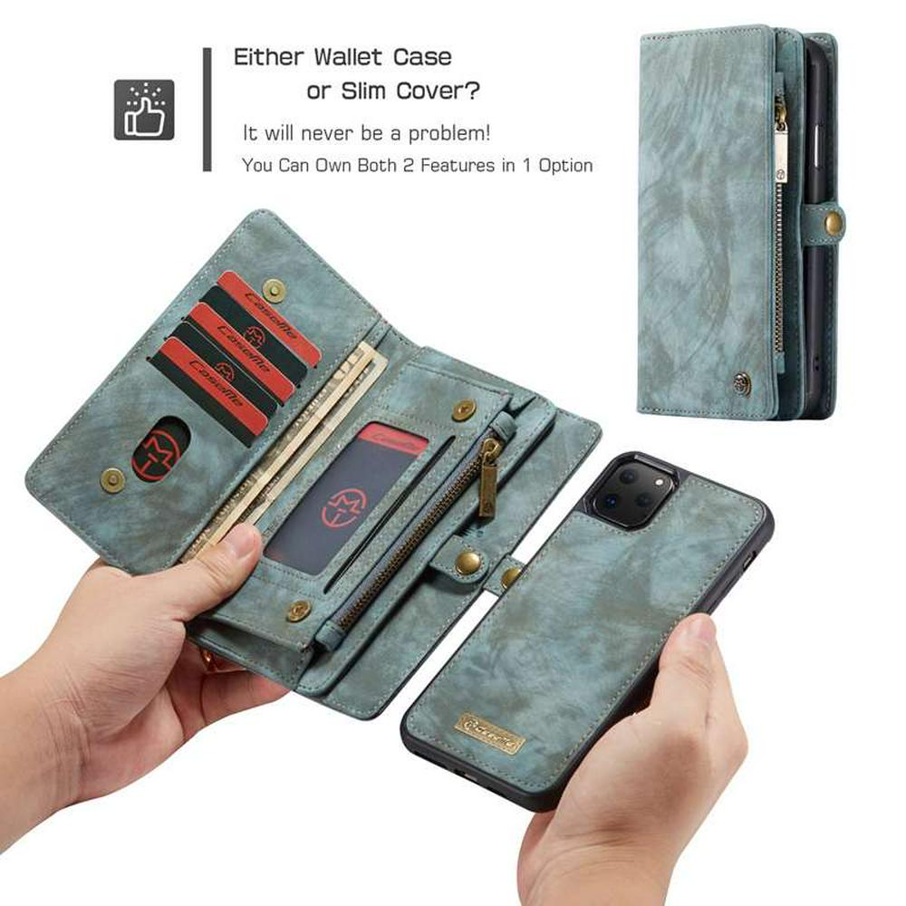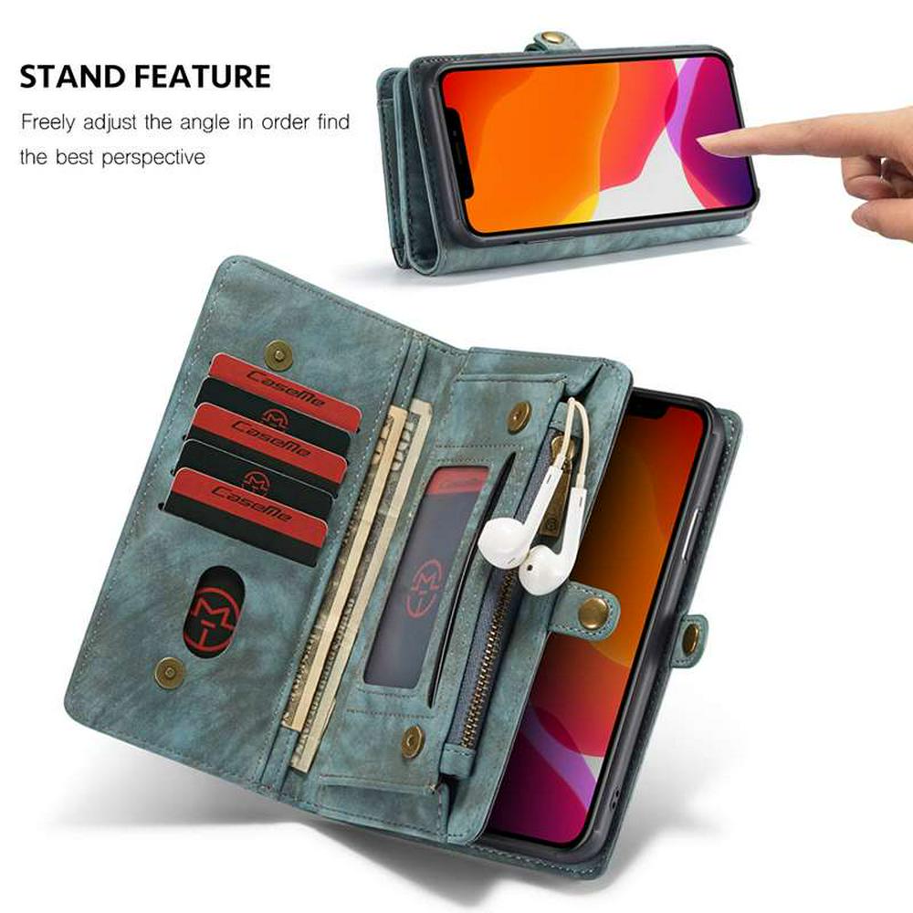 CaseMe Clamshell iPhone 6.5 inch Phone Case Real leather Business Phone Case Zipper Wallet Bracket Mobile Phone Case for 2019 iPhone 6.5 inch Case