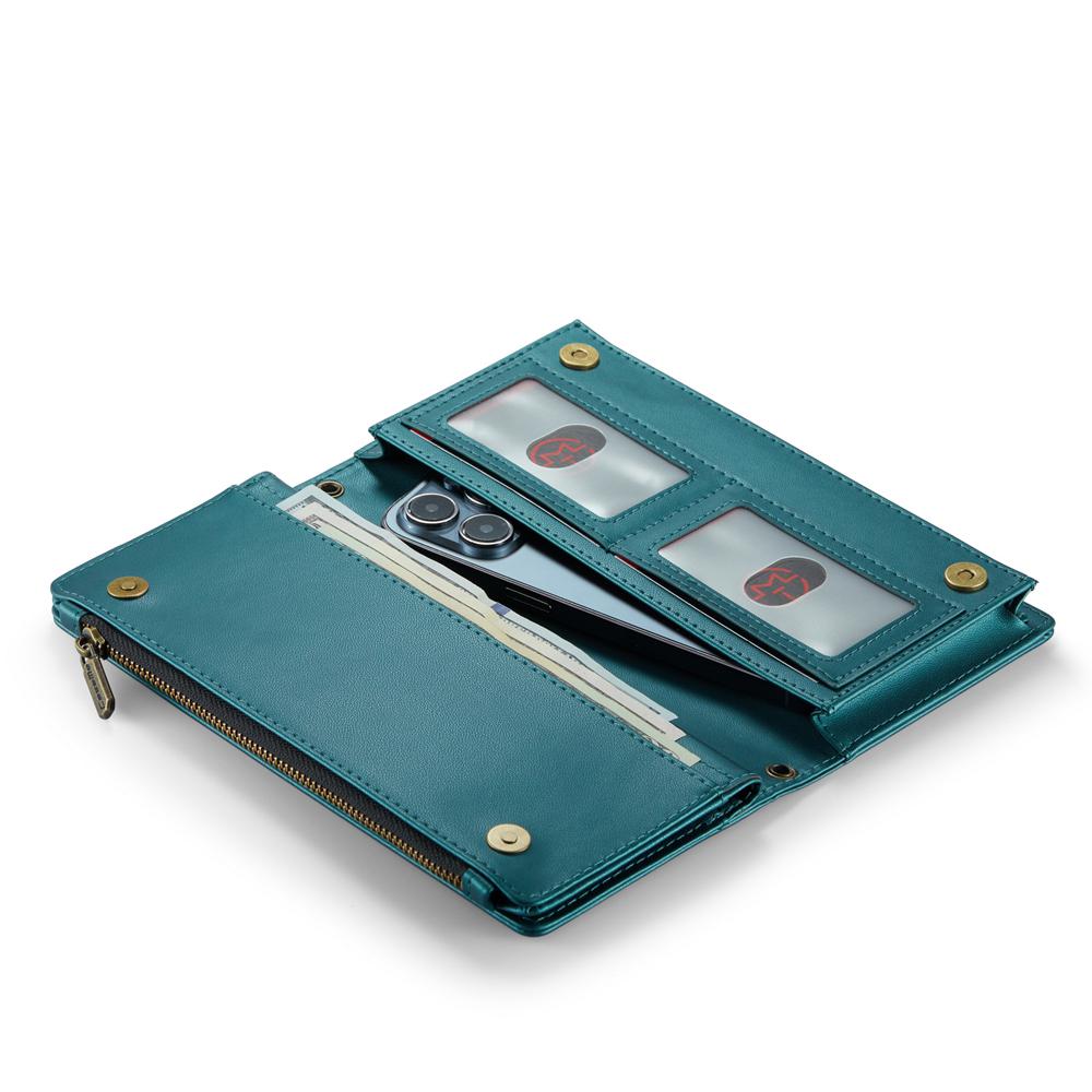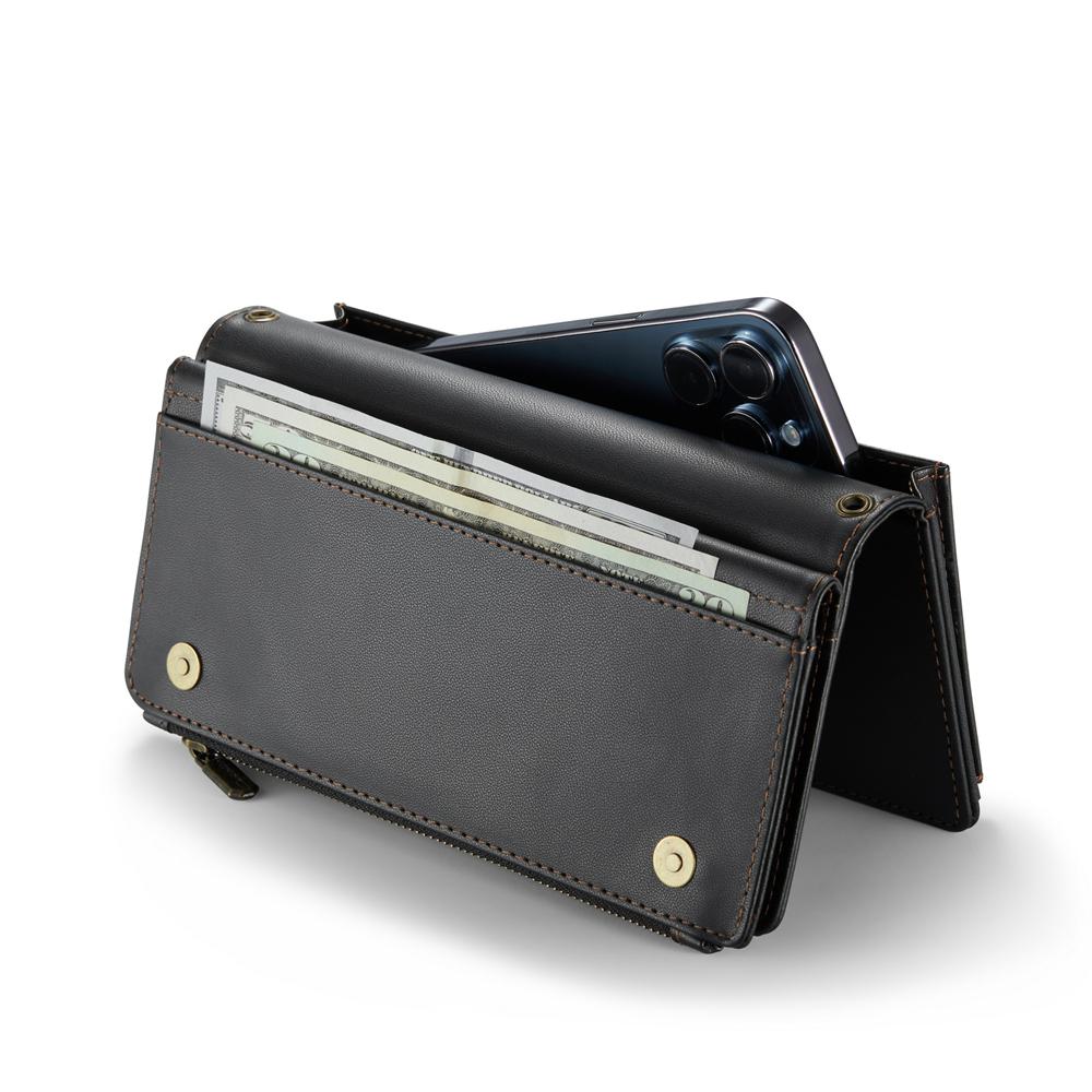 The bag features an interior with 9 card slots, 3 photo slots, 2 bill compartments, and 1 zippered pocket, providing ample space to keep your essentials organized and easily accessible