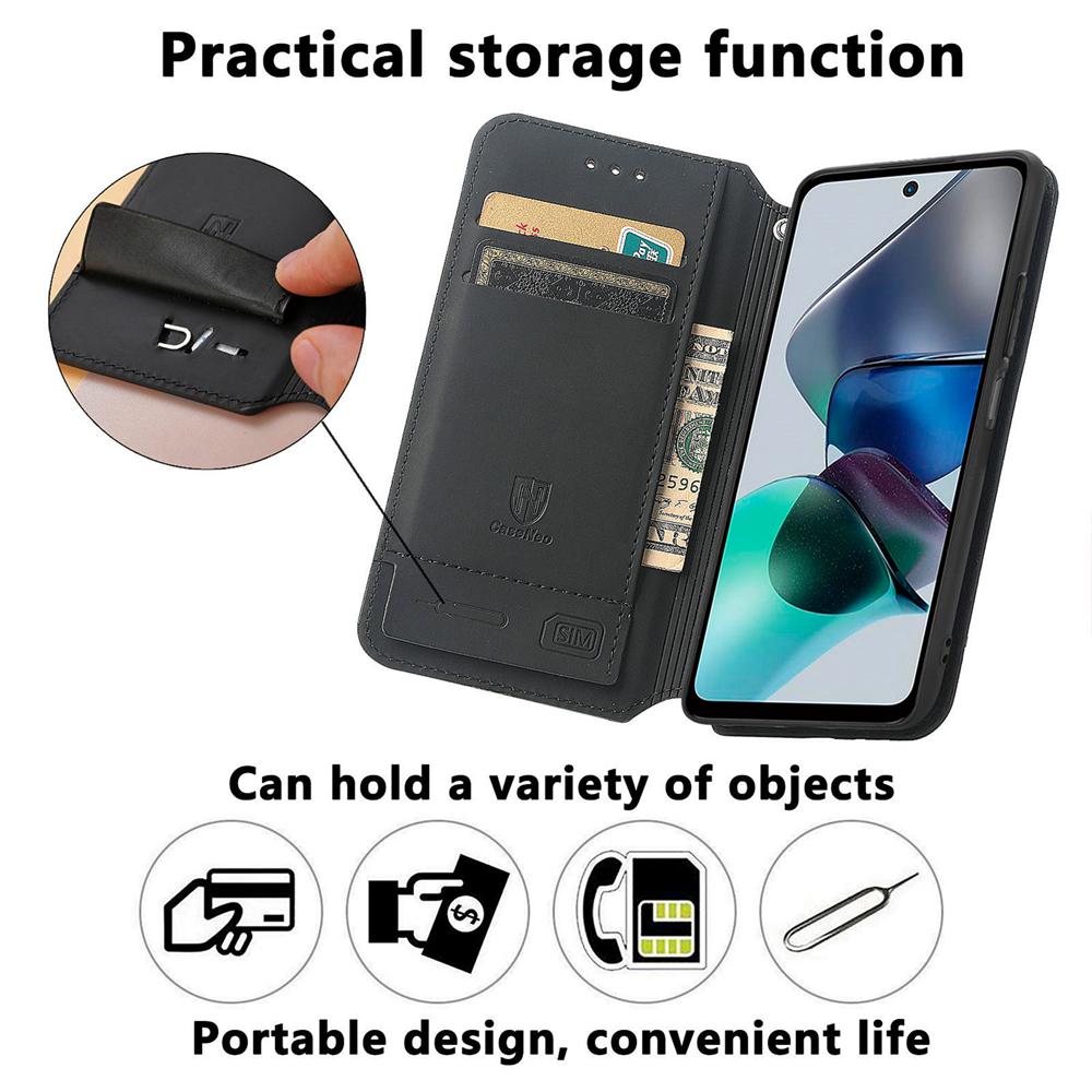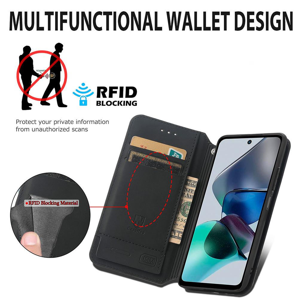 CASENEO 001 Series for Motorola G23 RFID Blocking Leather Phone Case Pattern Printing Phone Wallet Stand Cover