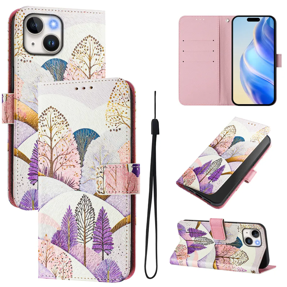 CH05 For iPhone 13 Pattern Printing PU Leather Drop-proof Cover Magnetic Clasp Flip Stand Wallet Case