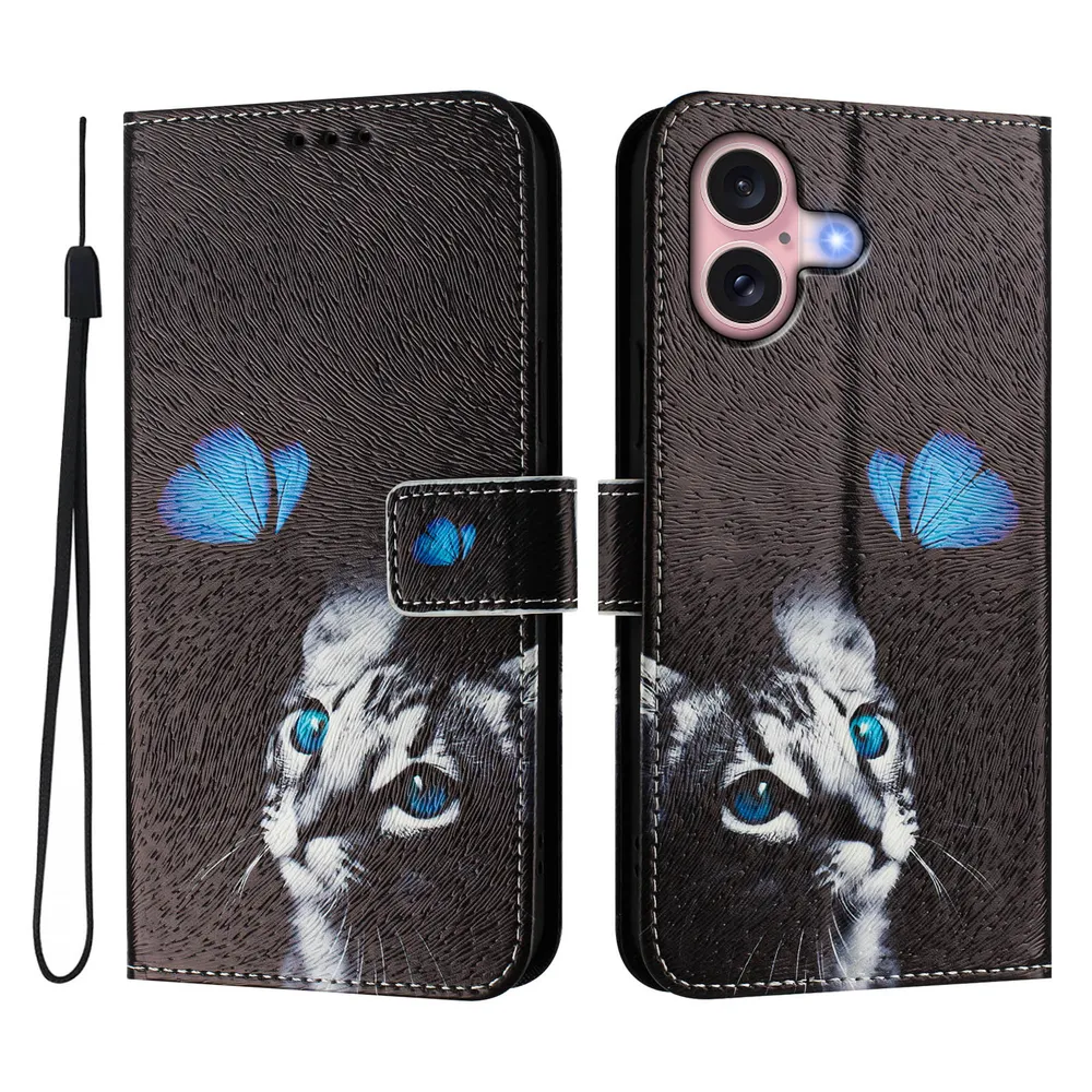 CH05 For iPhone 16 Pattern Printing PU Leather Drop-proof Cover Magnetic Clasp Flip Stand Wallet Case