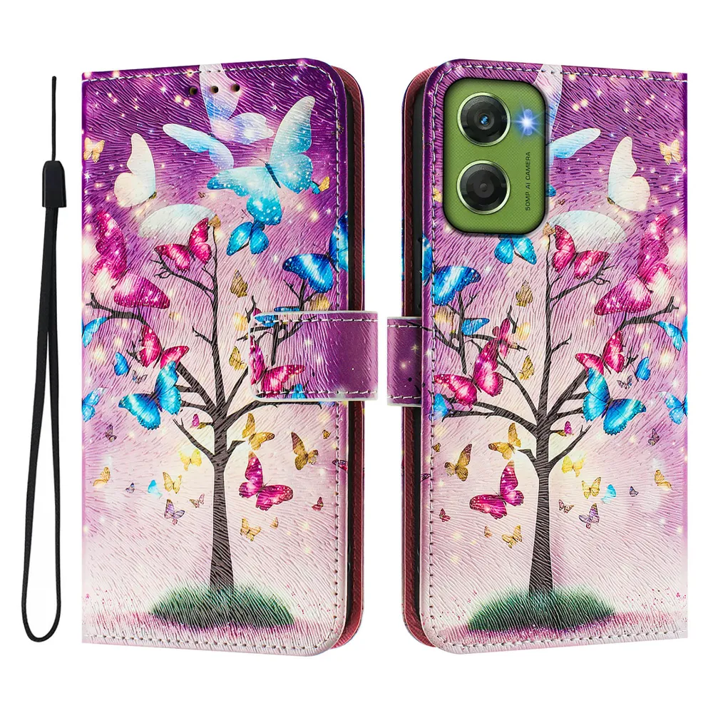 CH05 For Motorola Moto G06 4G Pattern Printing PU Leather Drop-proof Cover Magnetic Clasp Flip Stand Wallet Case