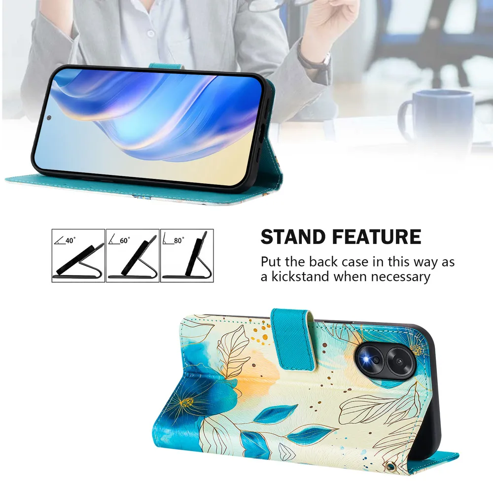 CH05 For Oppo A18 4G Pattern Printing PU Leather Drop-proof Cover Magnetic Clasp Flip Stand Wallet Case