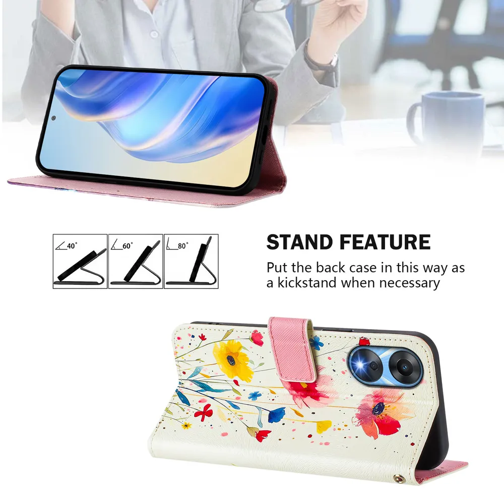 CH05 For Oppo A1X 5G Pattern Printing PU Leather Drop-proof Cover Magnetic Clasp Flip Stand Wallet Case