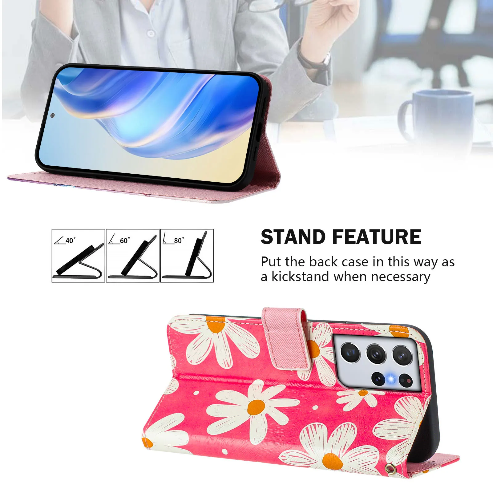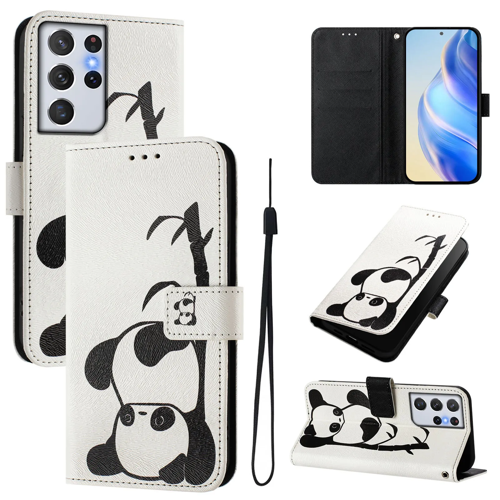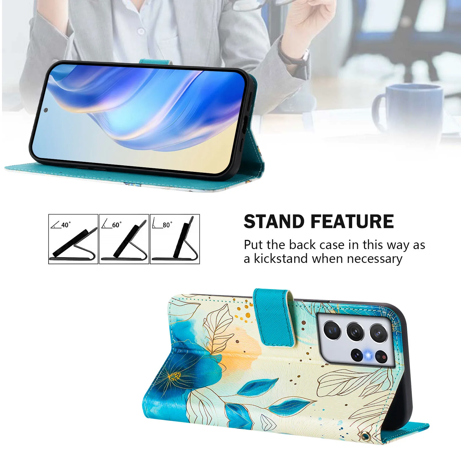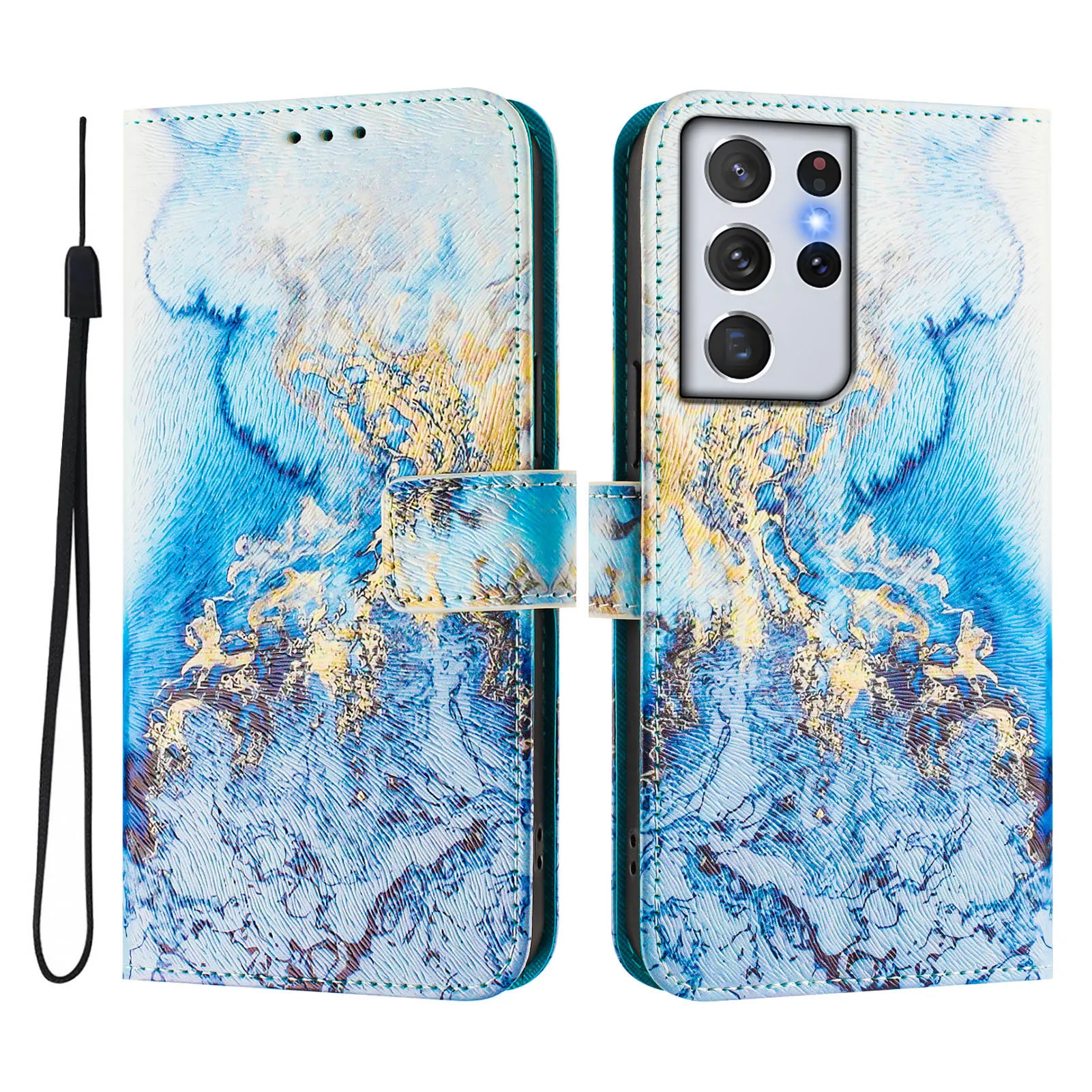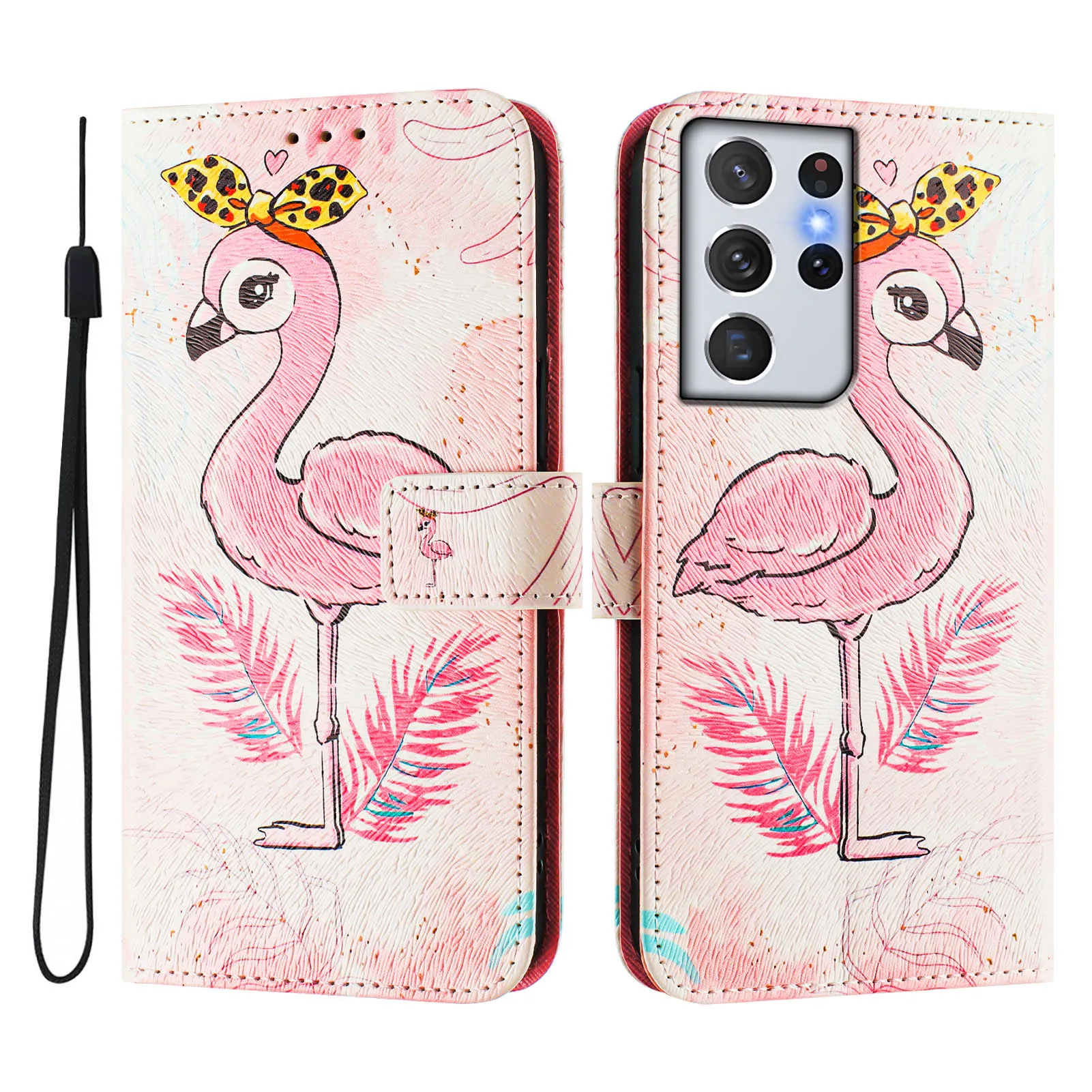 CH05 For Samusng Galaxy S21 Ultra Pattern Printing PU Leather Drop-proof Cover Magnetic Clasp Flip Stand Wallet Case