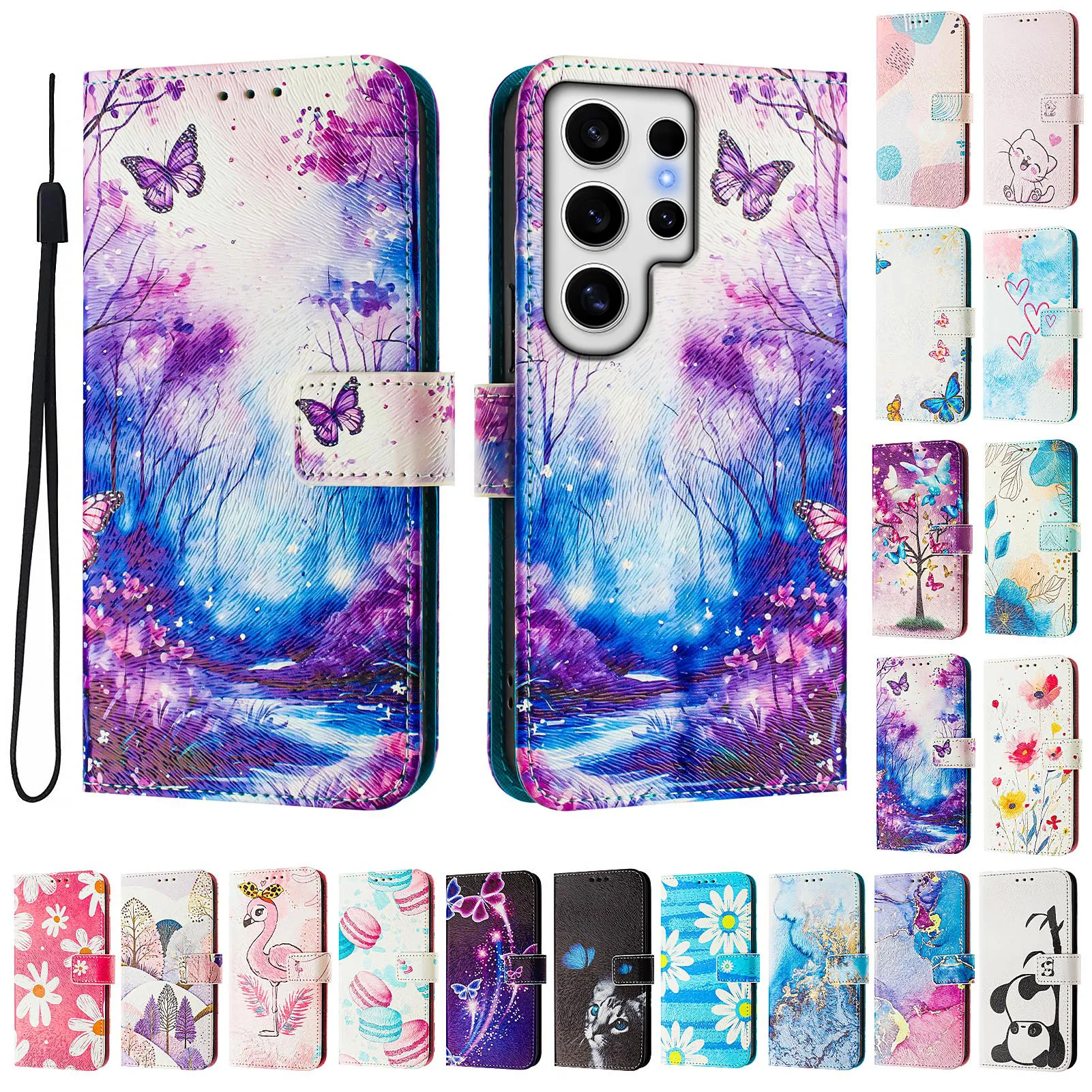CH05 For Samusng Galaxy S24 Ultra Pattern Printing PU Leather Drop-proof Cover Magnetic Clasp Flip Stand Wallet Case