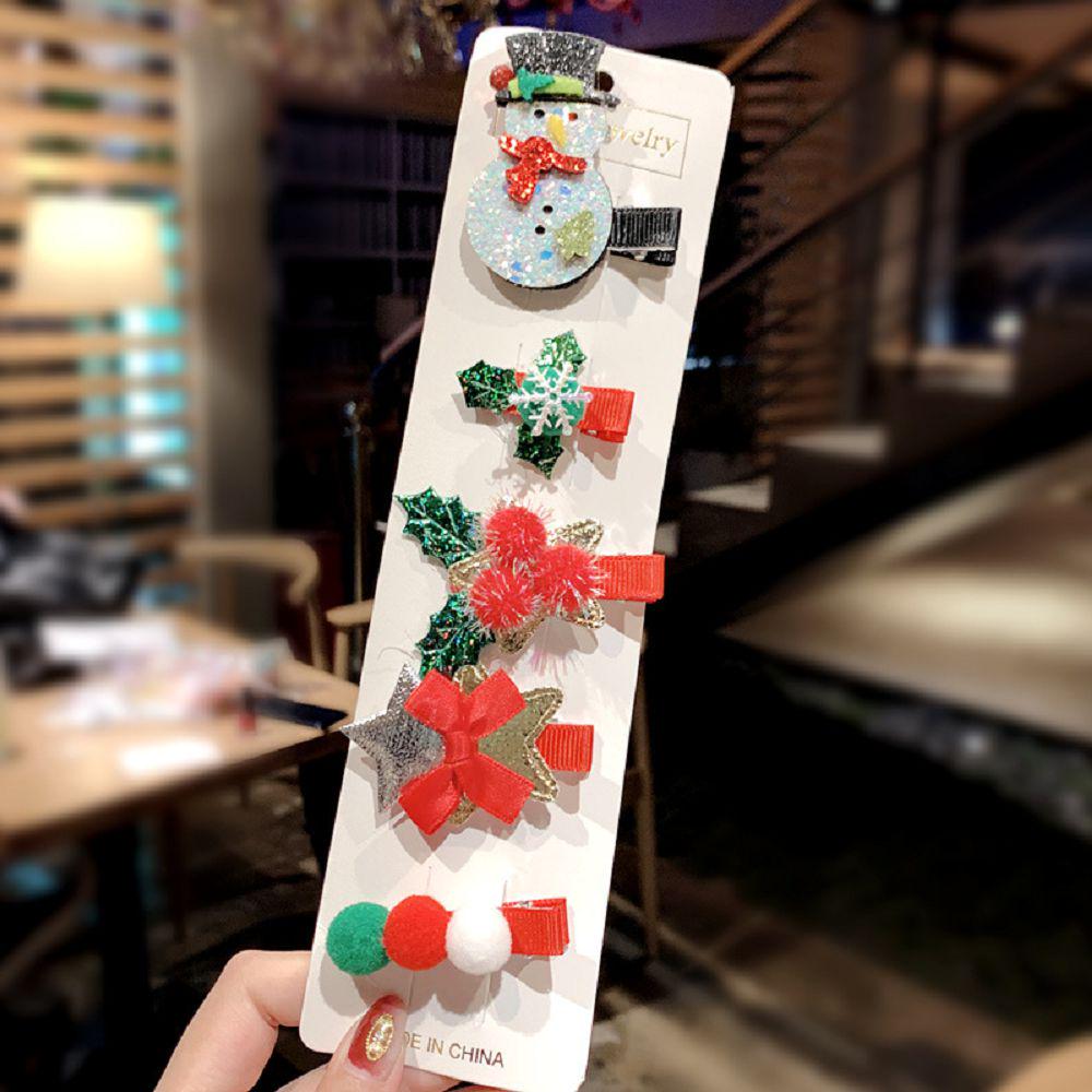 Children's Cute Christmas Hair Clip Set Snowman Santa Claus Side Clip Hair Accessories