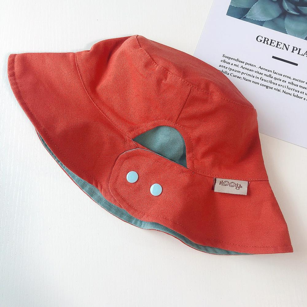Chlidren's Fisherman Hat Double-sided Solid Sun Hat with Snap Buttons