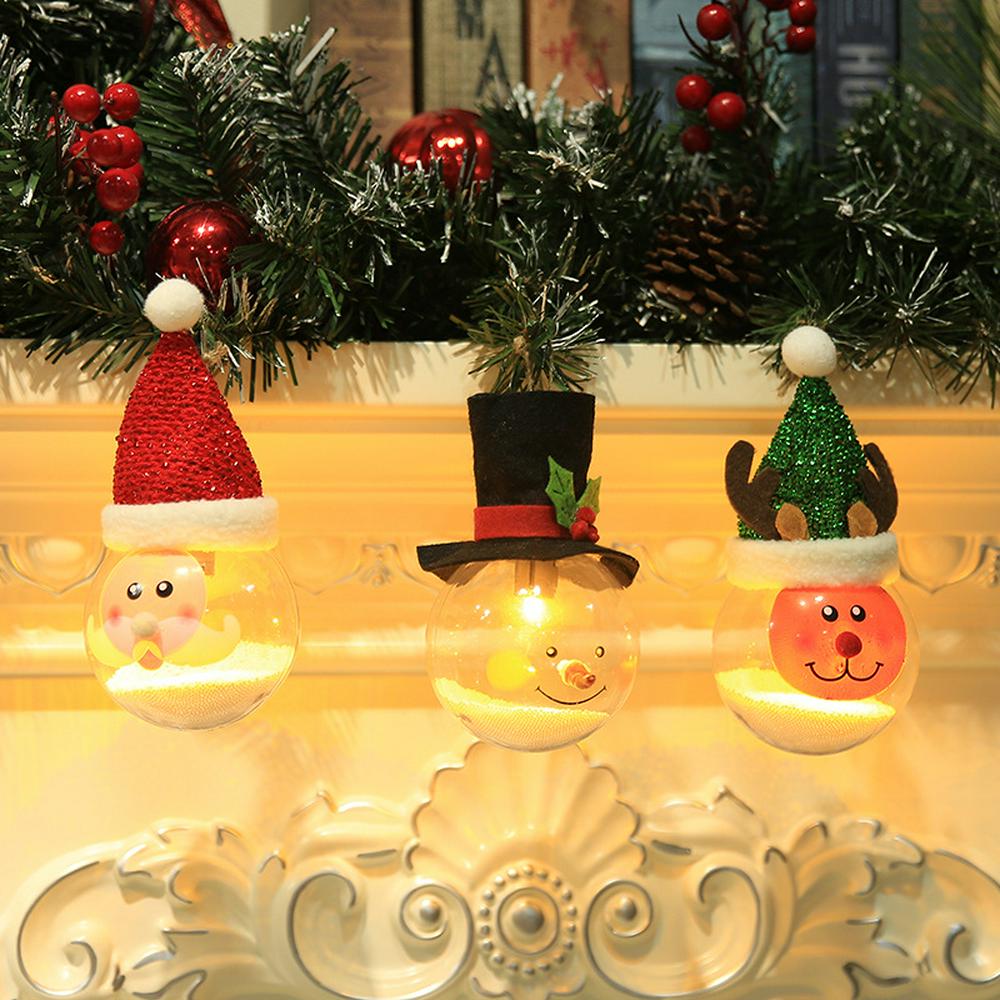 1 * Christmas Bulb Decorations with Lights Foam Particles Christmas Balls Cartoon Lamp Creative Santa Claus Old Man Snowman Christmas Tree Decorations