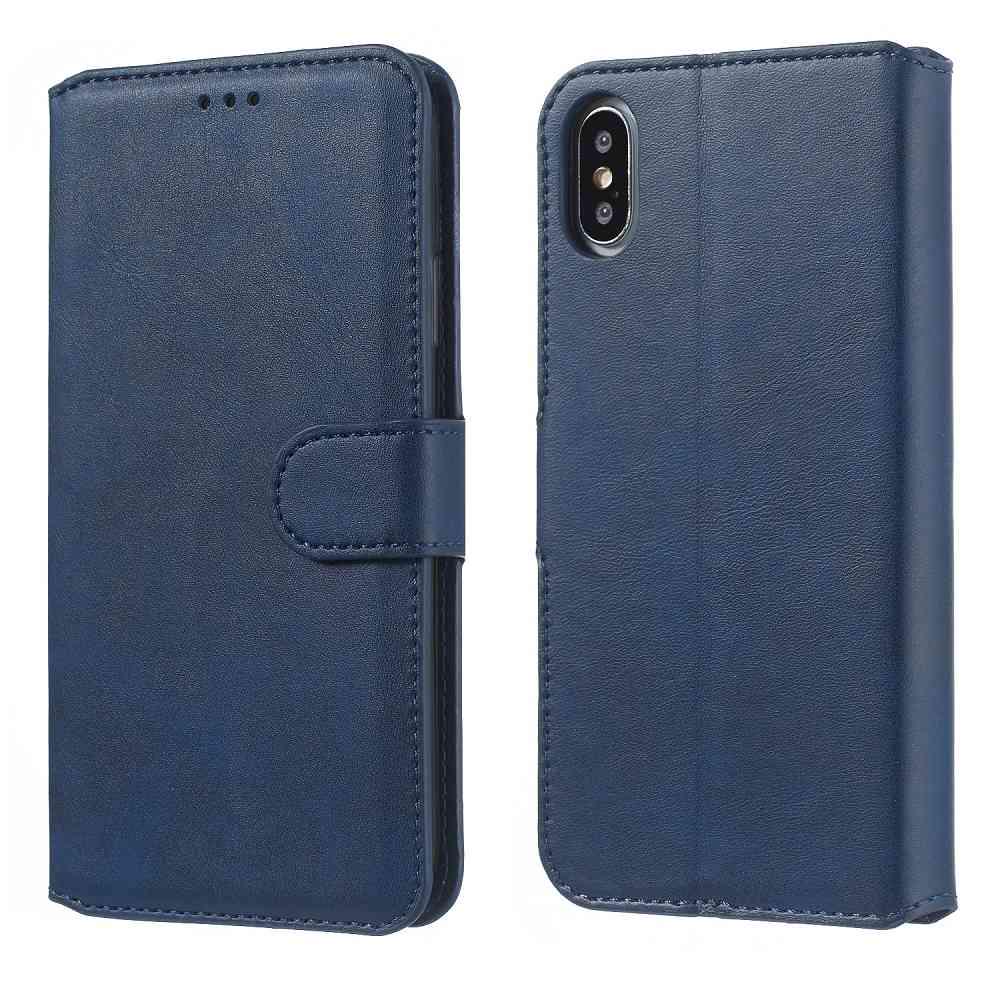 Classic Calf Pattern Side Flip Shockproof PU Leather + Soft TPU Magnetic Buckle with Card Slots and Stand Wallet Protective Case for iPhone Xs Max 6.5