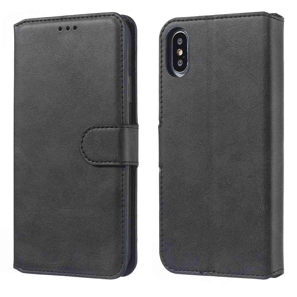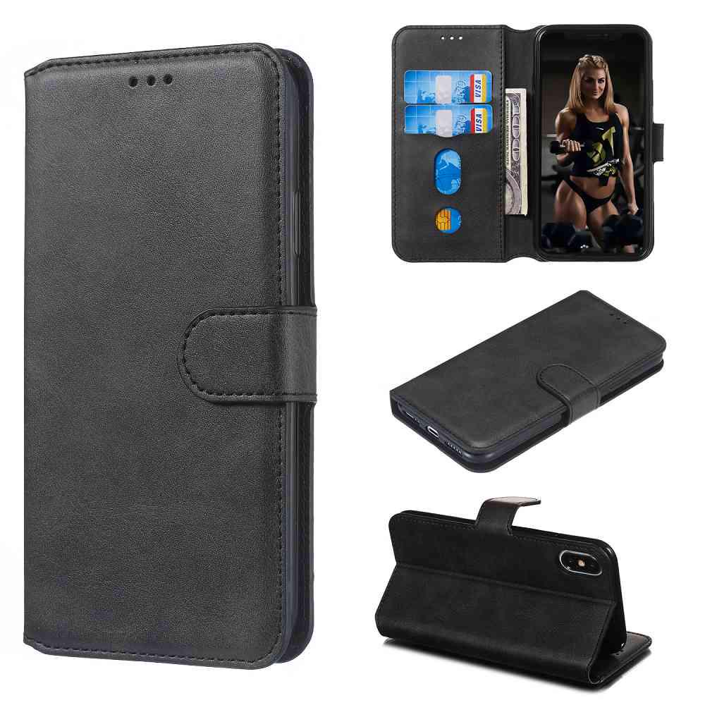 Classic Calf Pattern Side Flip Shockproof PU Leather + Soft TPU Magnetic Buckle with Card Slots and Stand Wallet Protective Case for iPhone Xs Max 6.5