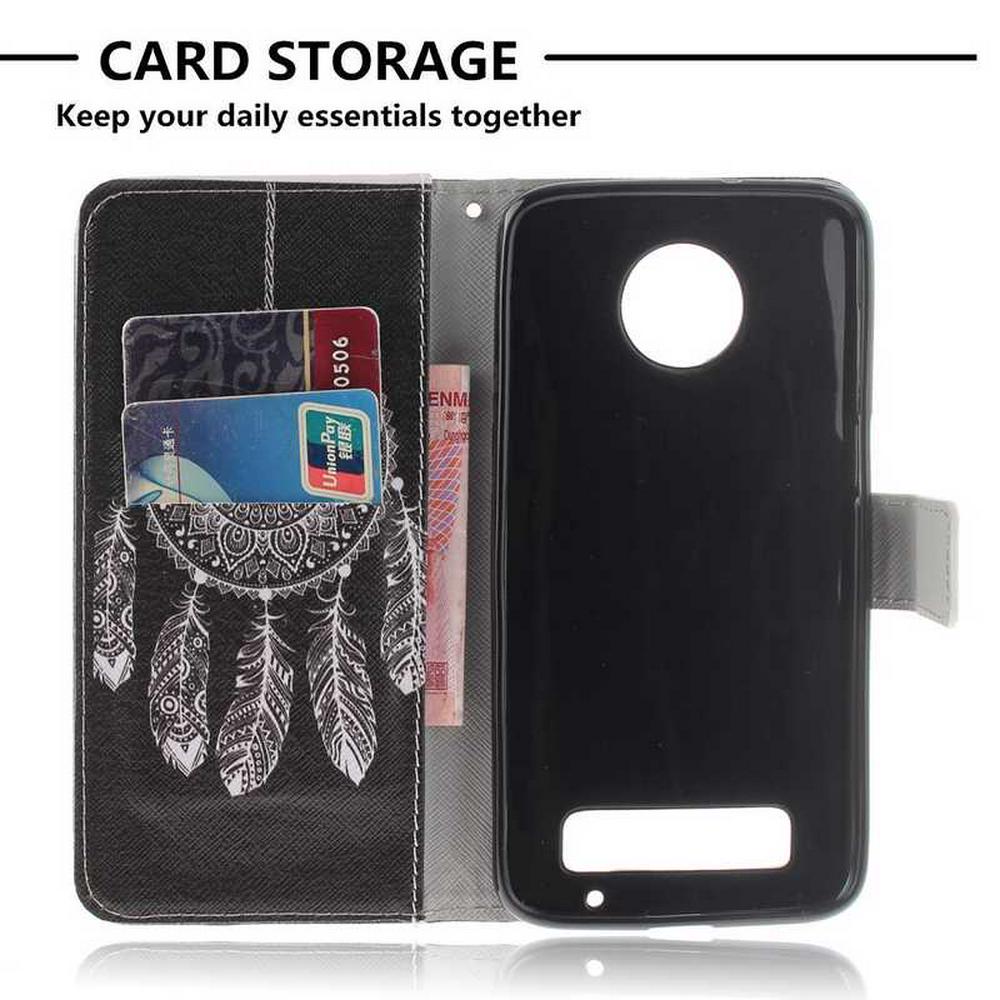 Color Painted Side Flip PU Leather + Soft TPU Card Slots with Magnetic Buckle and Stand Wallet Protective Case for Motorola Moto Z3 Play