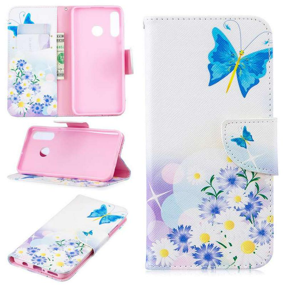 Colored Painting Shockproof Anti-Scratch Side Flip PU Leather + Soft TPU Card Slots with Magnetic Buckle and Stand Wallet Protective Case for Huawei P30 Lite