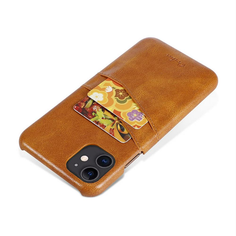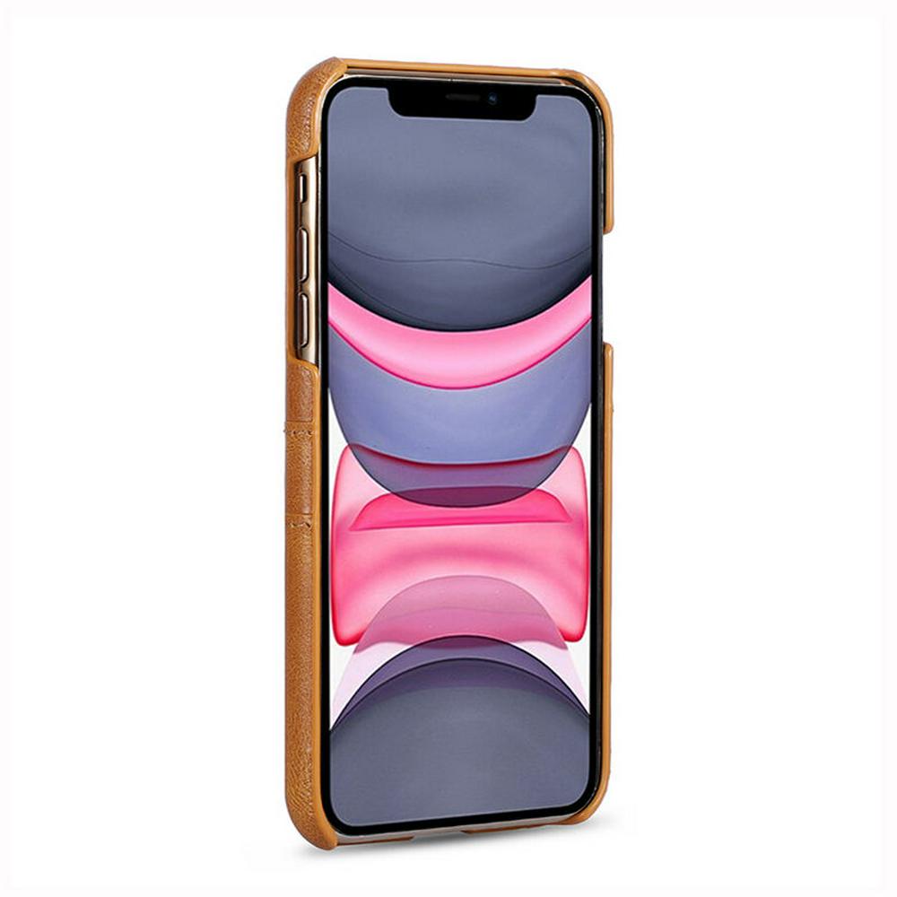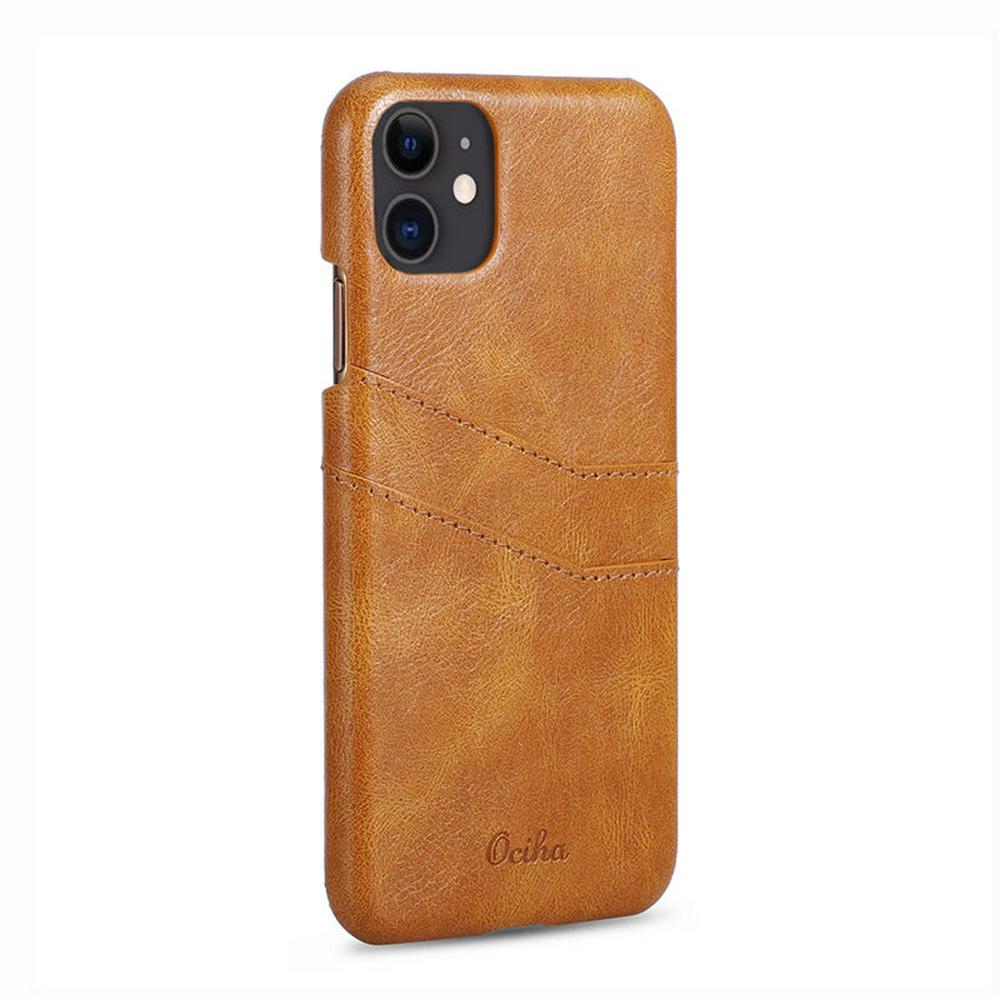 Cow Skin PU Leather Coated Hard PC with Card Holder Back Cover Case for Apple iPhone 11(6.1)