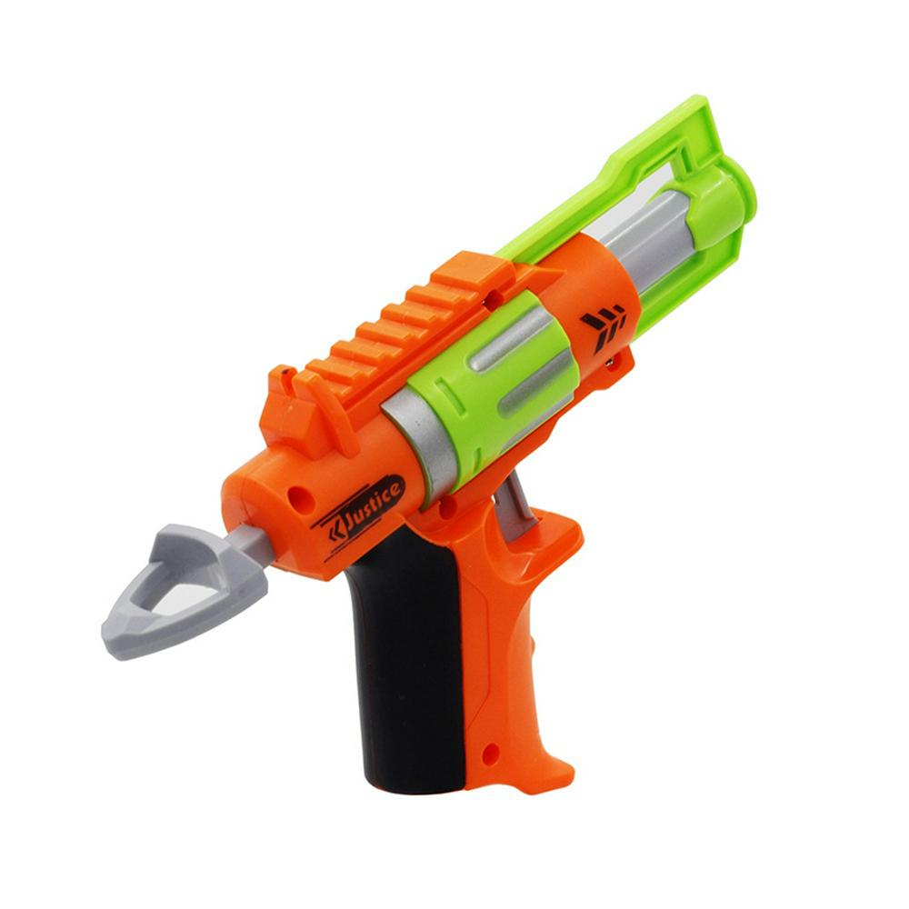 This toy is made of heavy duty durable plastic which has been safety tested for young kids. It doesn’t have any small parts and hazard to it. There sturdy, lightweight for little boys , girls to use. The foam darts are harmless.