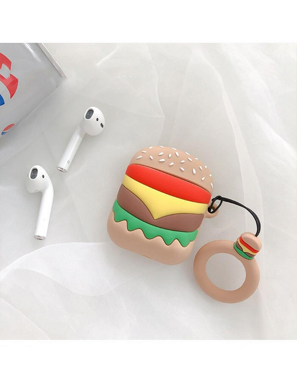 Creative Silicone Burger Fries Shock Resistant Bluetooth Earphone Protective Case Cover For Apple AirPods with Keychain
