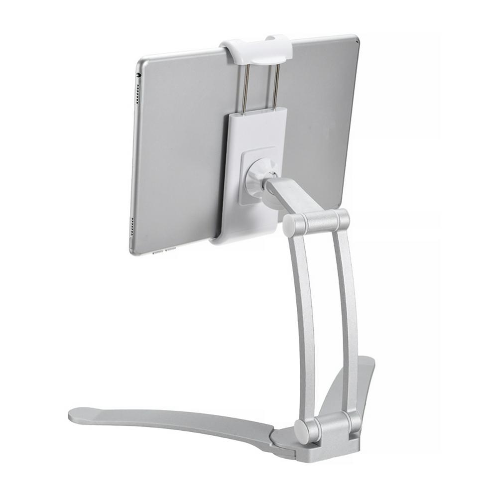 2-in-1 Mount or Desktop Use Suitable as a hands-free tablet holder when mounted on wall or cabinet or as a desktop tablet stand.