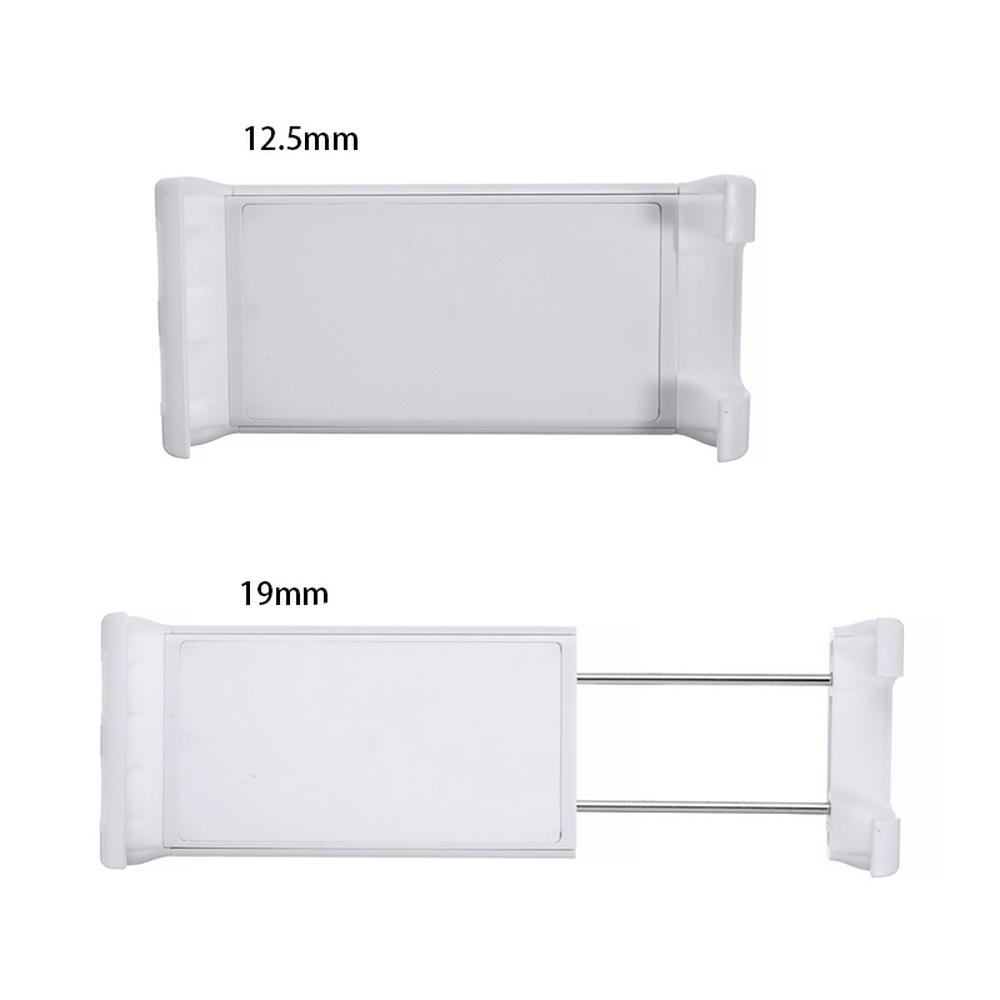 Holder adjusts from 13.5cm to 18cm wide. Can work for 5-10.5 Inch Tablet.