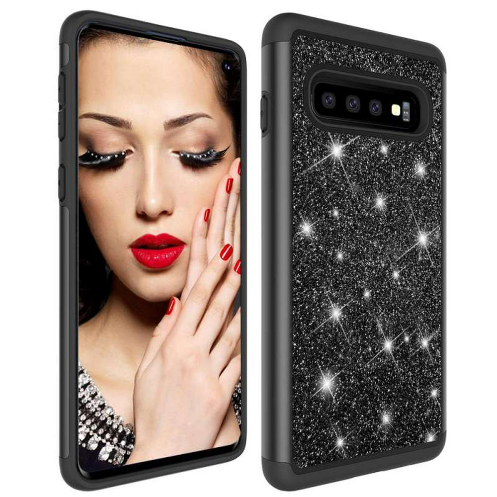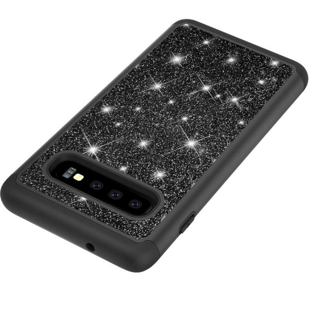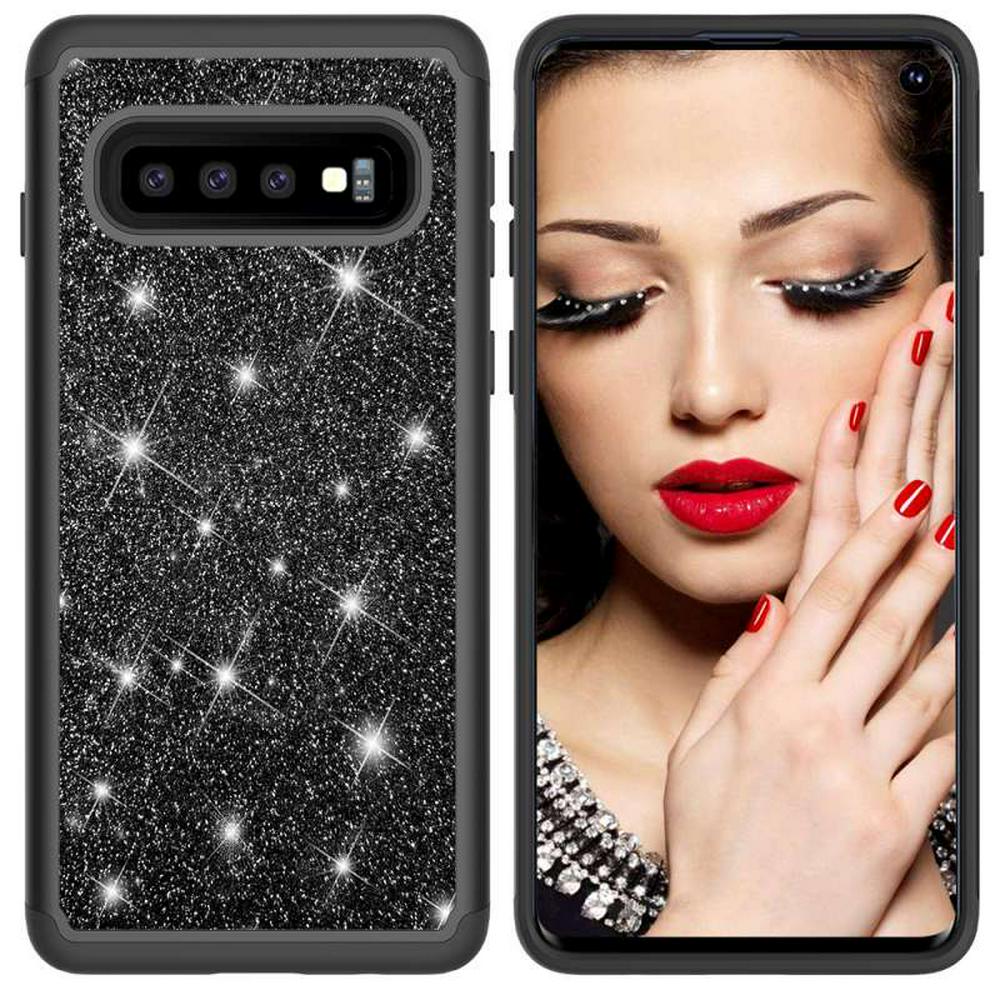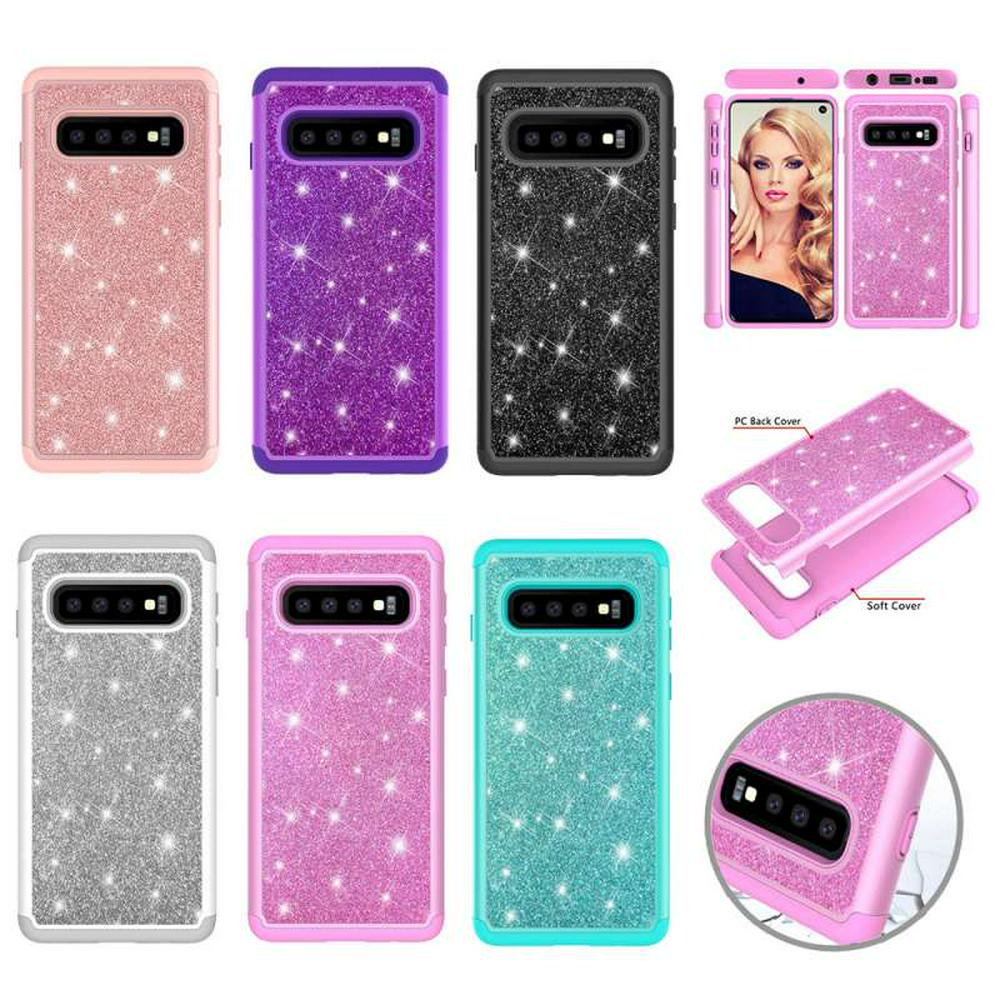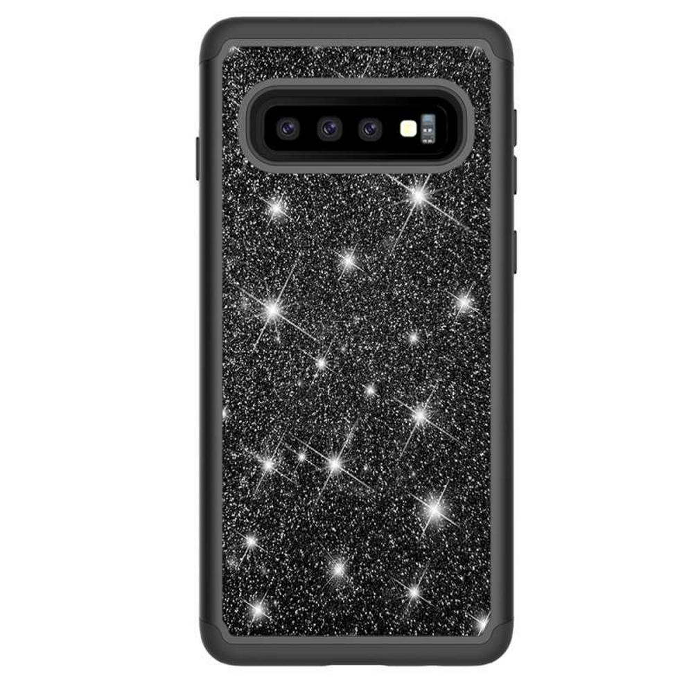 Diamond Studded Glitter Powder 2 in 1 Shockproof Detachable Hard PC + Soft TPU Back Cover Protective Case for Samsung Galaxy S10