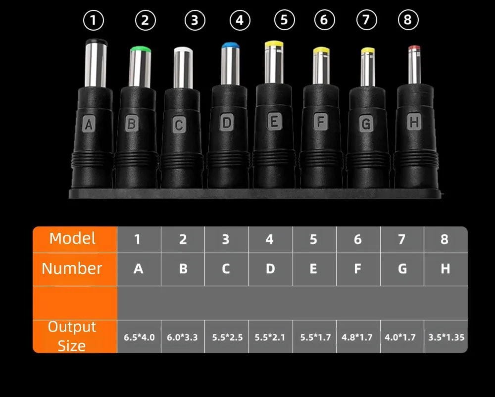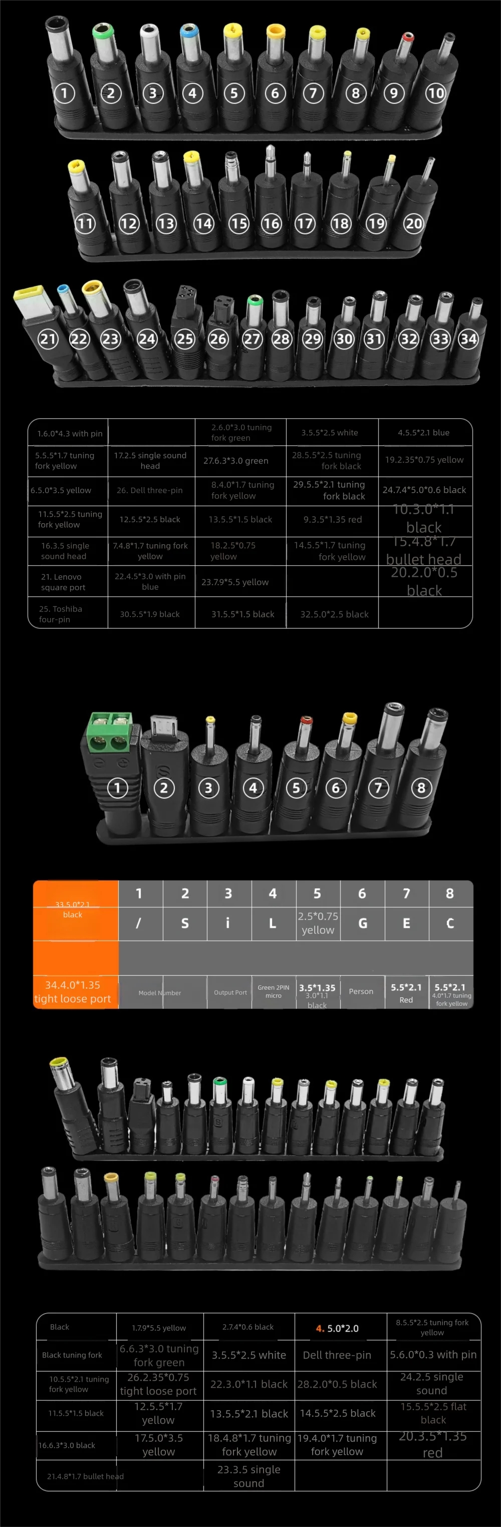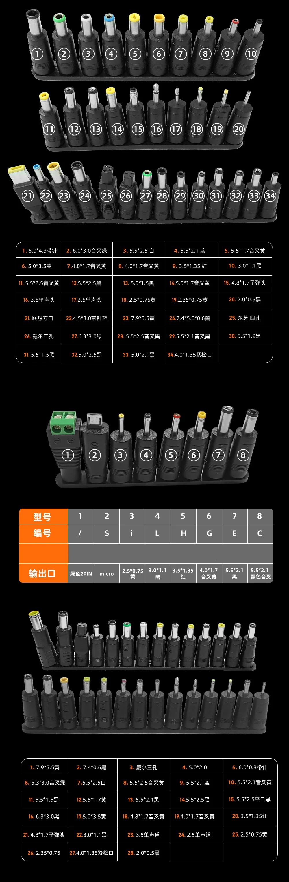 Note: The USB C to DC decoy cable must be used with a charger or mobile power supply that supports one of the PD protocols, otherwise it can only output 5V. Please check whether your charger or mobile power supply supports the required load power supply level before purchasing. , so as not to waste your time, please cut off the power when replacing different connector ports.