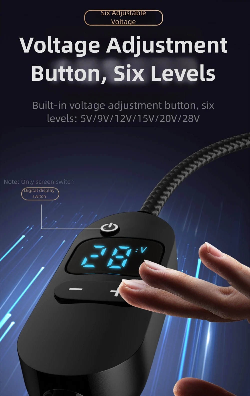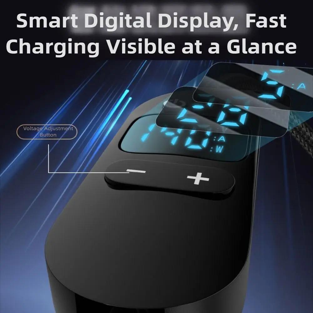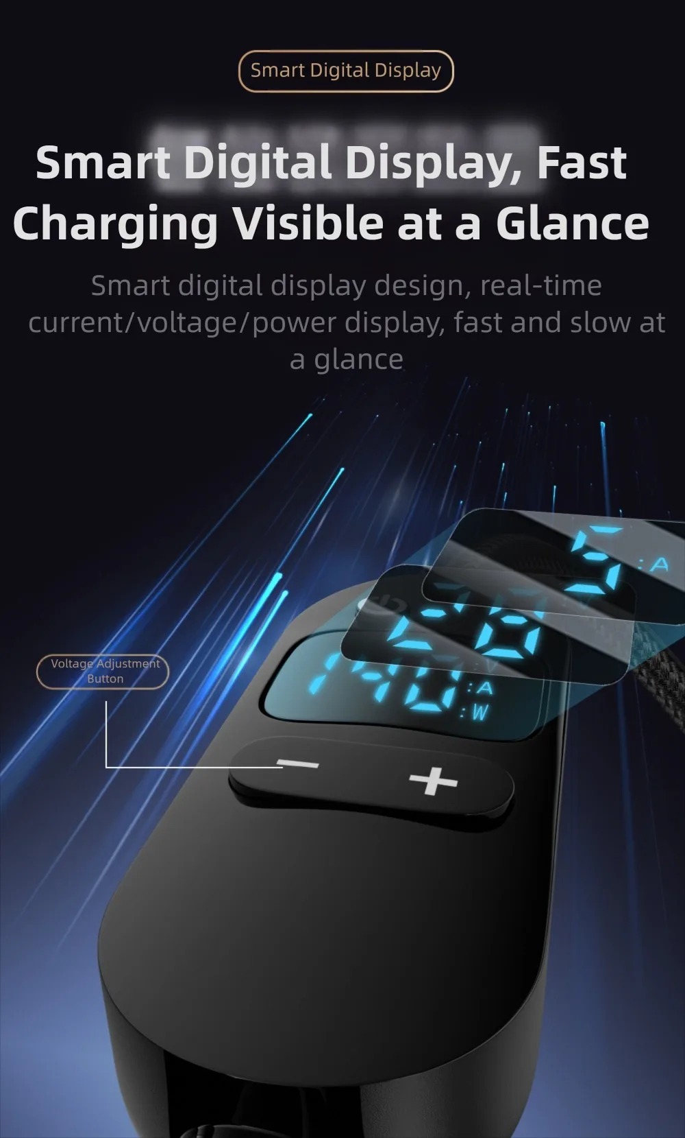 - Real-time Display Functionality: Featuring a dynamic digital display that alternates between showing current, voltage, and power, this cable empowers you with real-time updates on your device's charging status. Achieve precise adjustments and optimal charging for enhanced performance and safety.