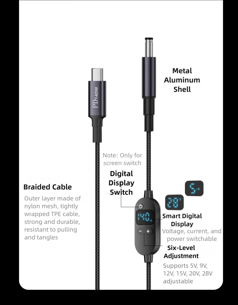 - Adjustable Voltage Output: This PD trigger cable supports adjustable voltage outputs of 5V, 12V, 15V, and 20V, allowing you to power a wide range of devices, including optical modems, routers, and laptops. The flexibility to switch between different voltage levels ensures compatibility with various electronics.