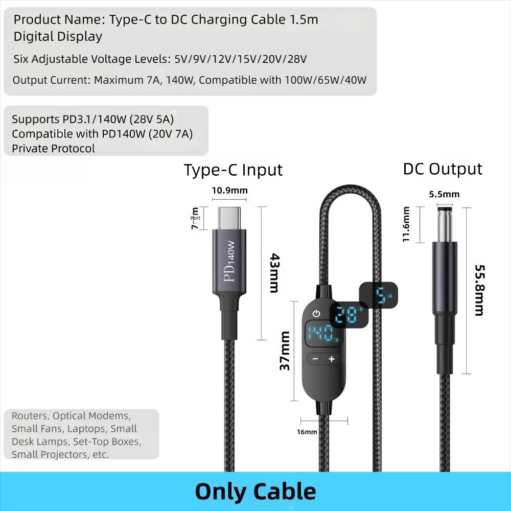 - Type-C to DC Conversion: Designed with a Type-C male connector to DC, this cable enables you to use your USB-C PD (Power Delivery) charger to power devices that require a DC input. This conversion capability makes it a versatile accessory for modern charging needs.