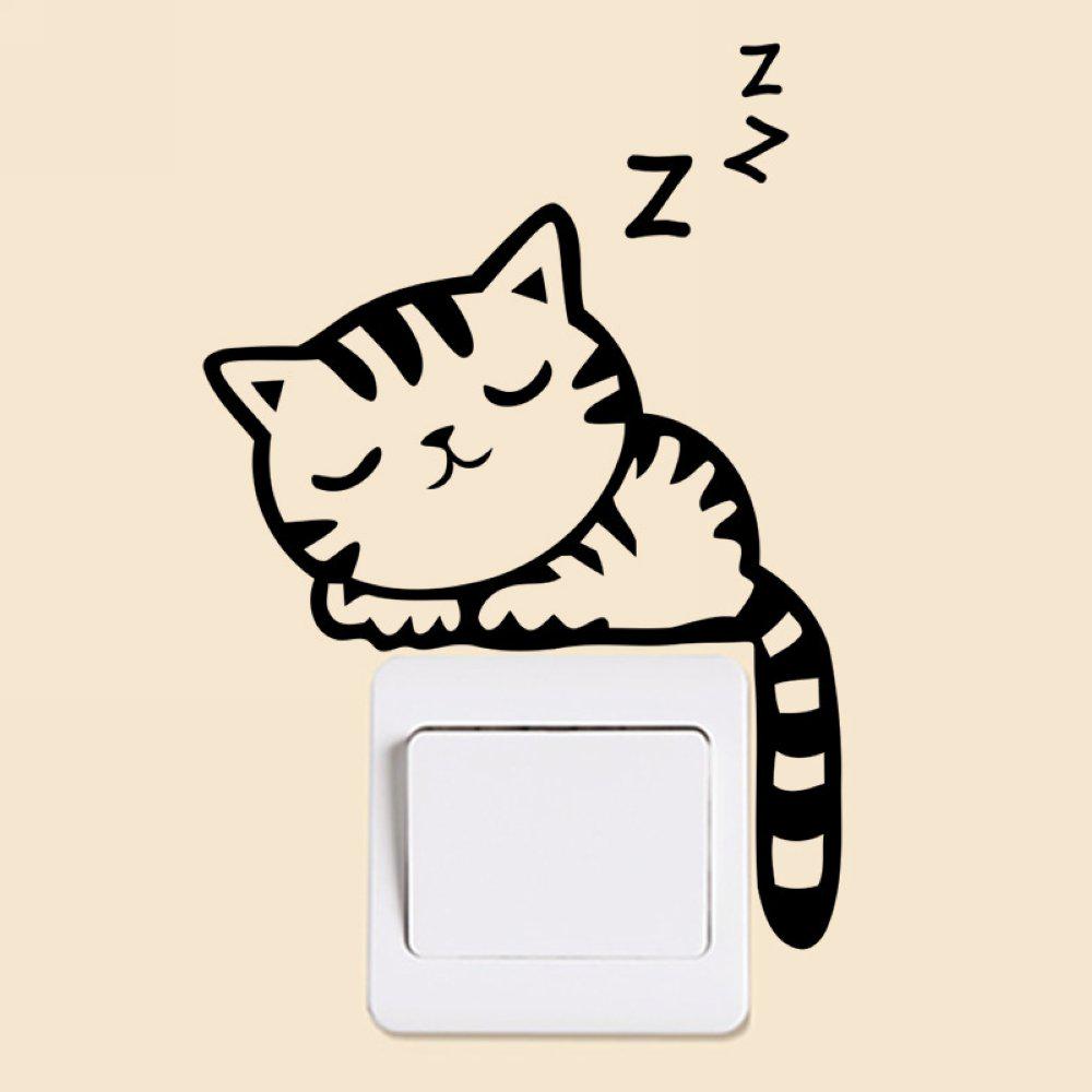DIY Funny Cute Sleeping Cat Dog Switch Cover CaseWallpaper Home Stickers Bedroom Living Room