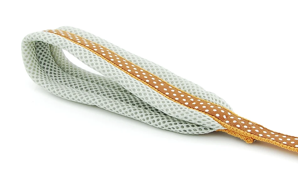 The mesh is soft, breathable and elastic. The mesh is wider than ribbon , softer and more comfortable.