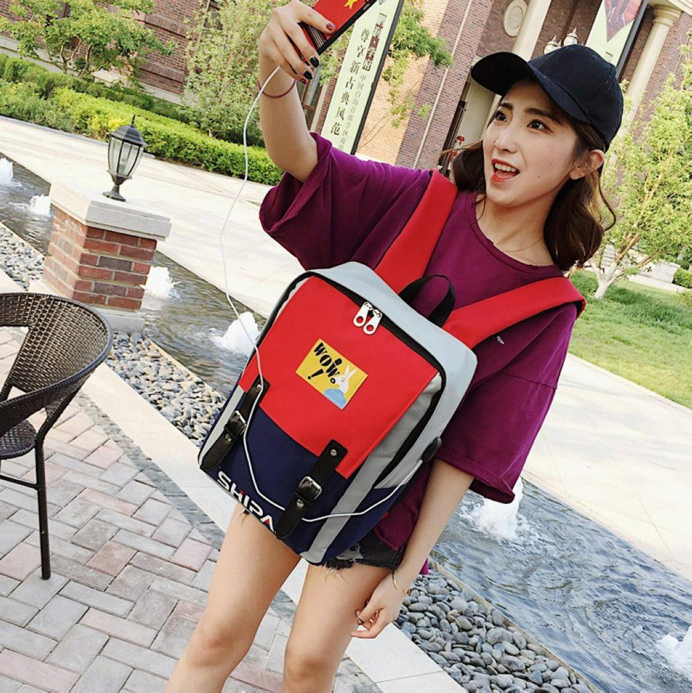 Double Shoulder Bag Chao College University Student's Study Bag Book Storage Bag USB Charged Outdoor Travel