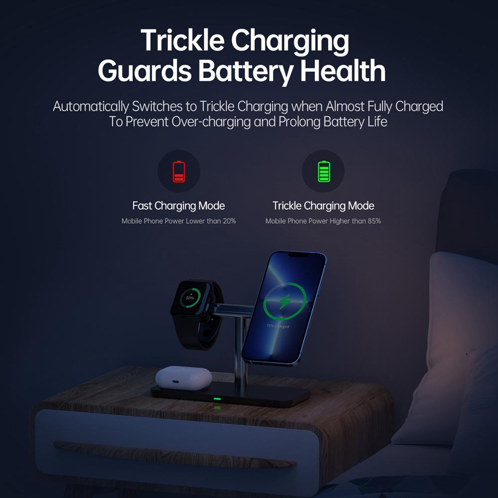 Magsafe Detachable Three-in-one design, supports simultaneous charging of iPhone/watch/earphones.