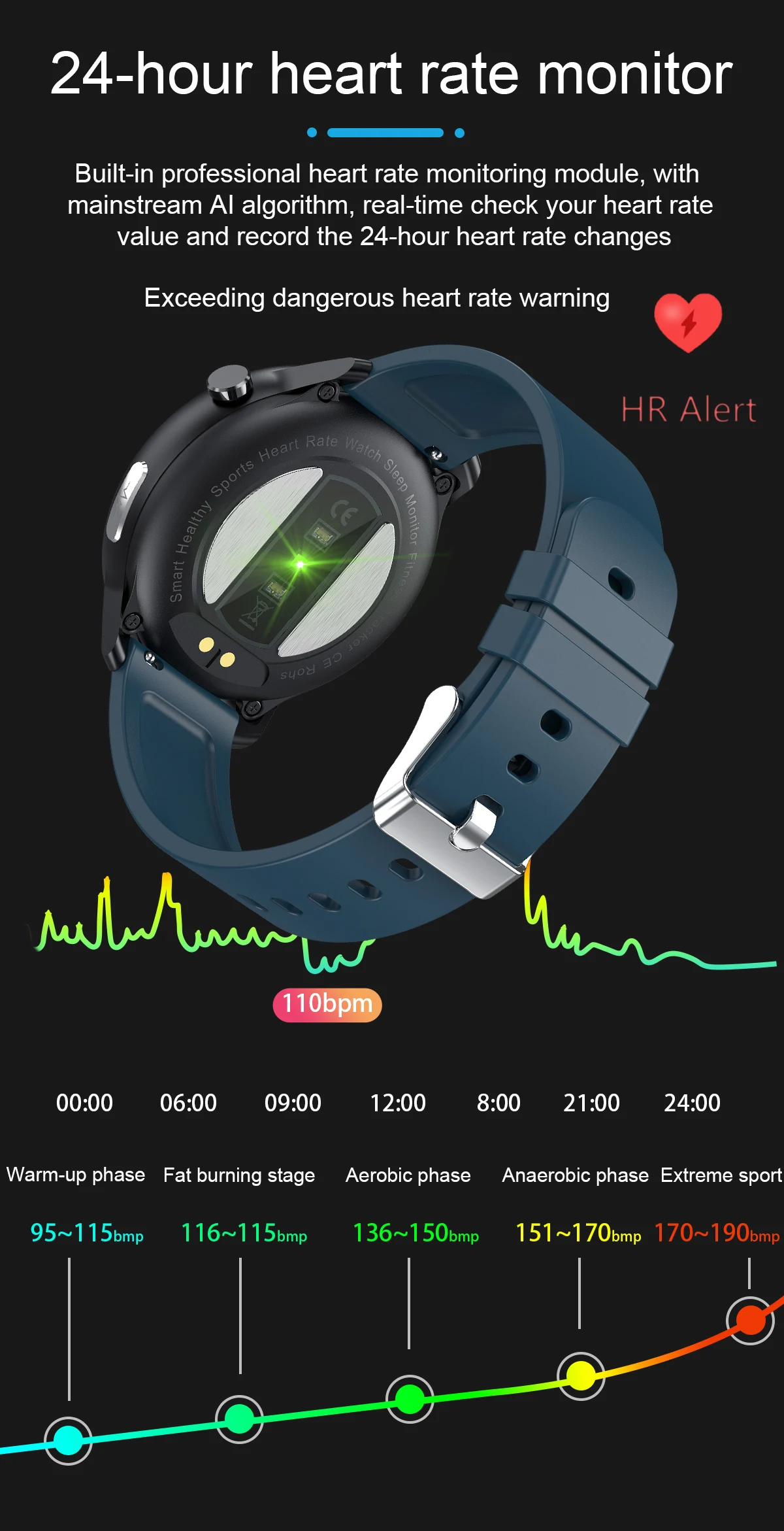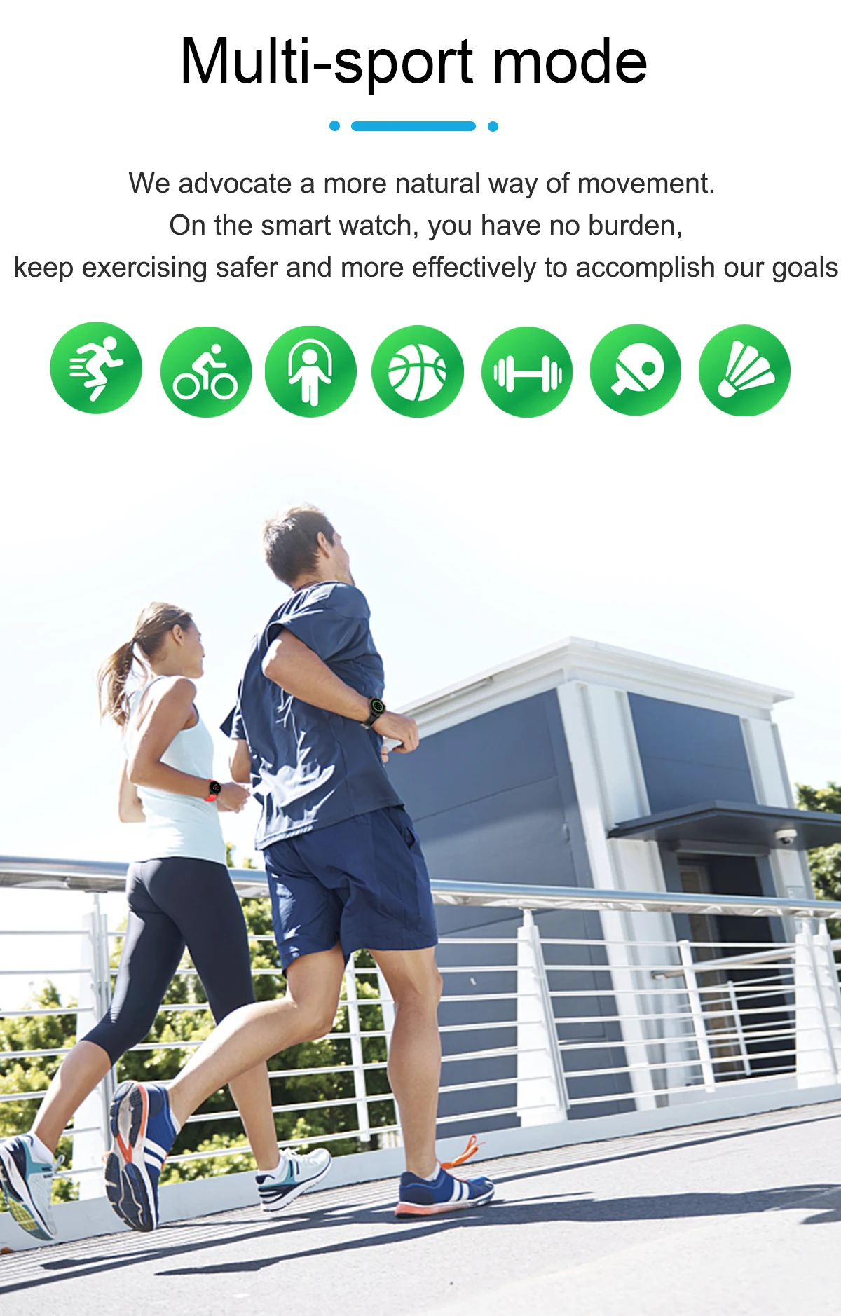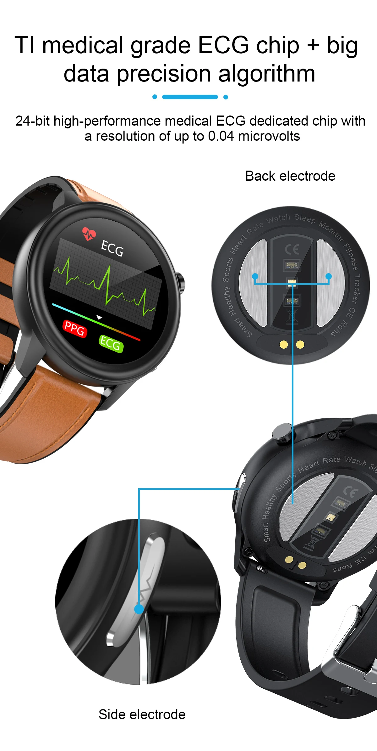 Temperature monitoring, blood oxygen monitoring, respiratory rate. ECG + PPG combined with ECG AI medical diagnosis. Exercise function: step count / calories / distance, Multi Sport mode. Heart rate monitoring, blood pressure monitoring and other health functions Remote care function Environmental friendly TPU / metal strap, hand to hand Wearable Wearable hardware + smart app + big data cloud service Wear it with you and control, display and record data through app. Compatible System:Android 4.4 and above,iOS 8.2 and above Waterpfoof Level:IP68