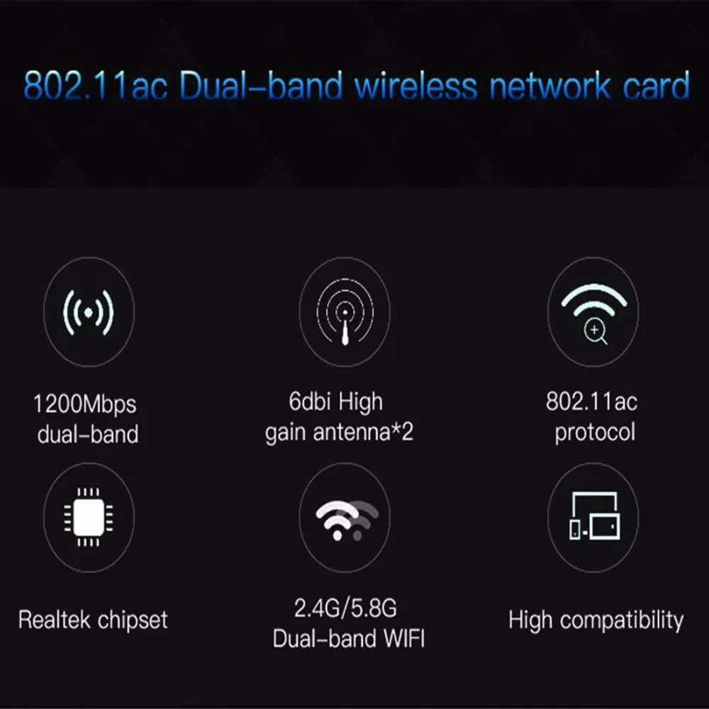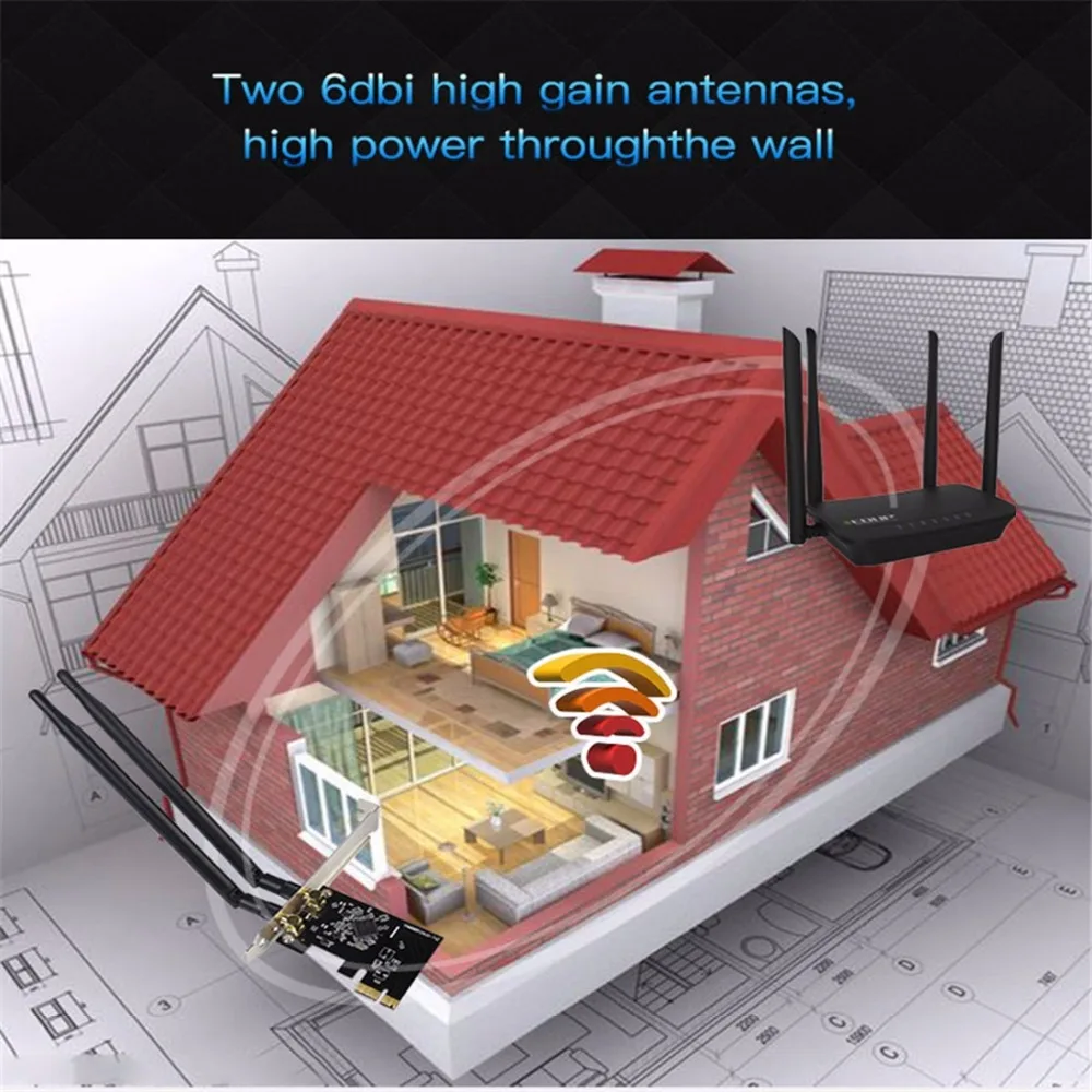 EDUP EP-9607 1200Mbps 2.4G/5G Dual Band PCI-E Express Wireless Adapter Network Card