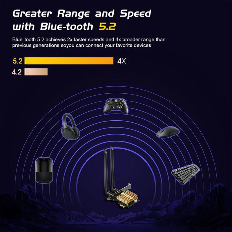 Type:PCIE Wi-Fi 6E Network Card with Blue-tooth 5.2